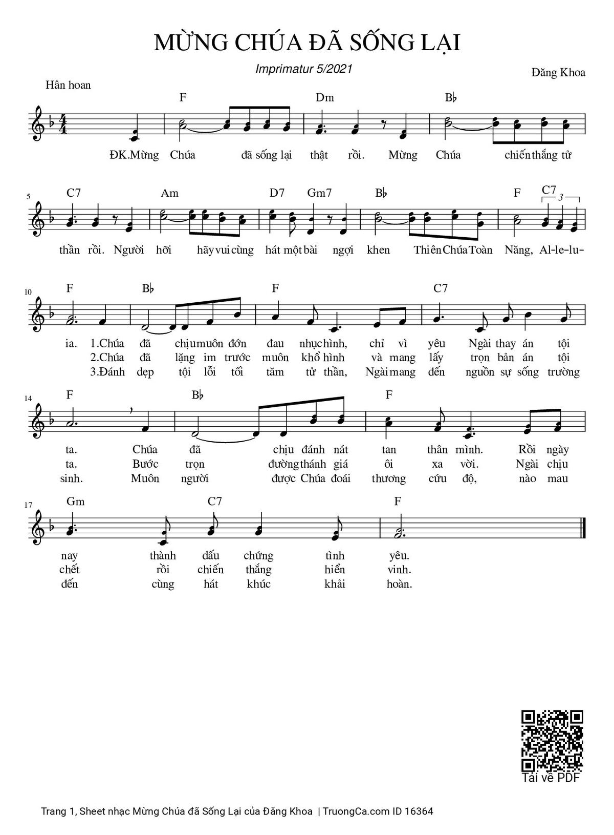 Các sheet PDF tương tự Mừng Chúa đã Sống Lại: