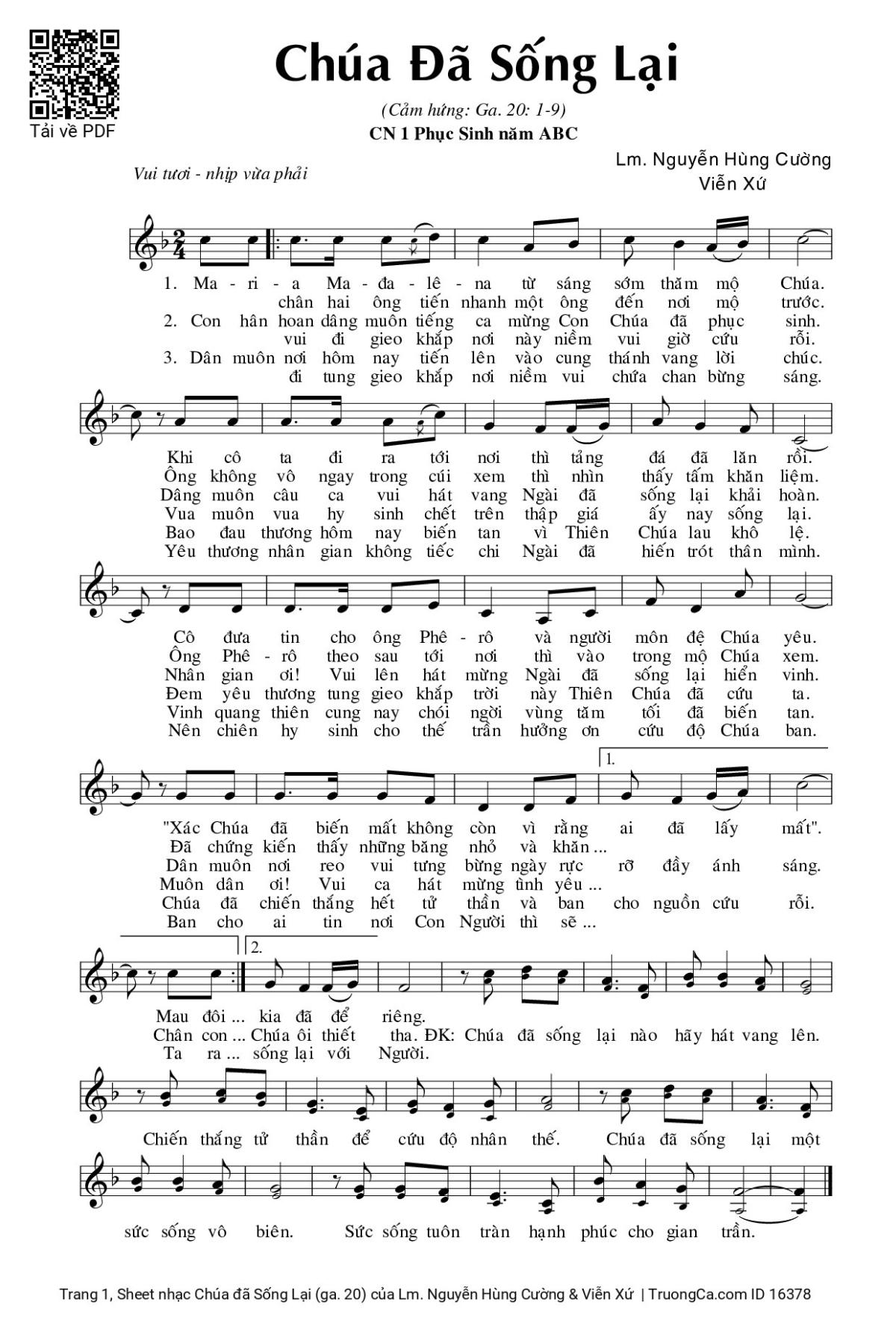Các sheet PDF tương tự Chúa đã Sống Lại (ga. 20):