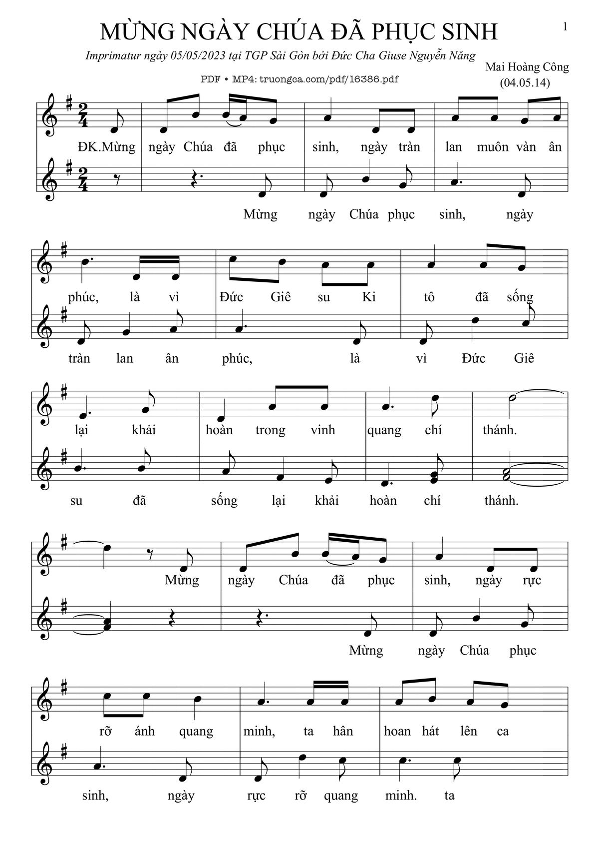 Các sheet PDF tương tự Mừng Ngày Chúa đã Phục Sinh: