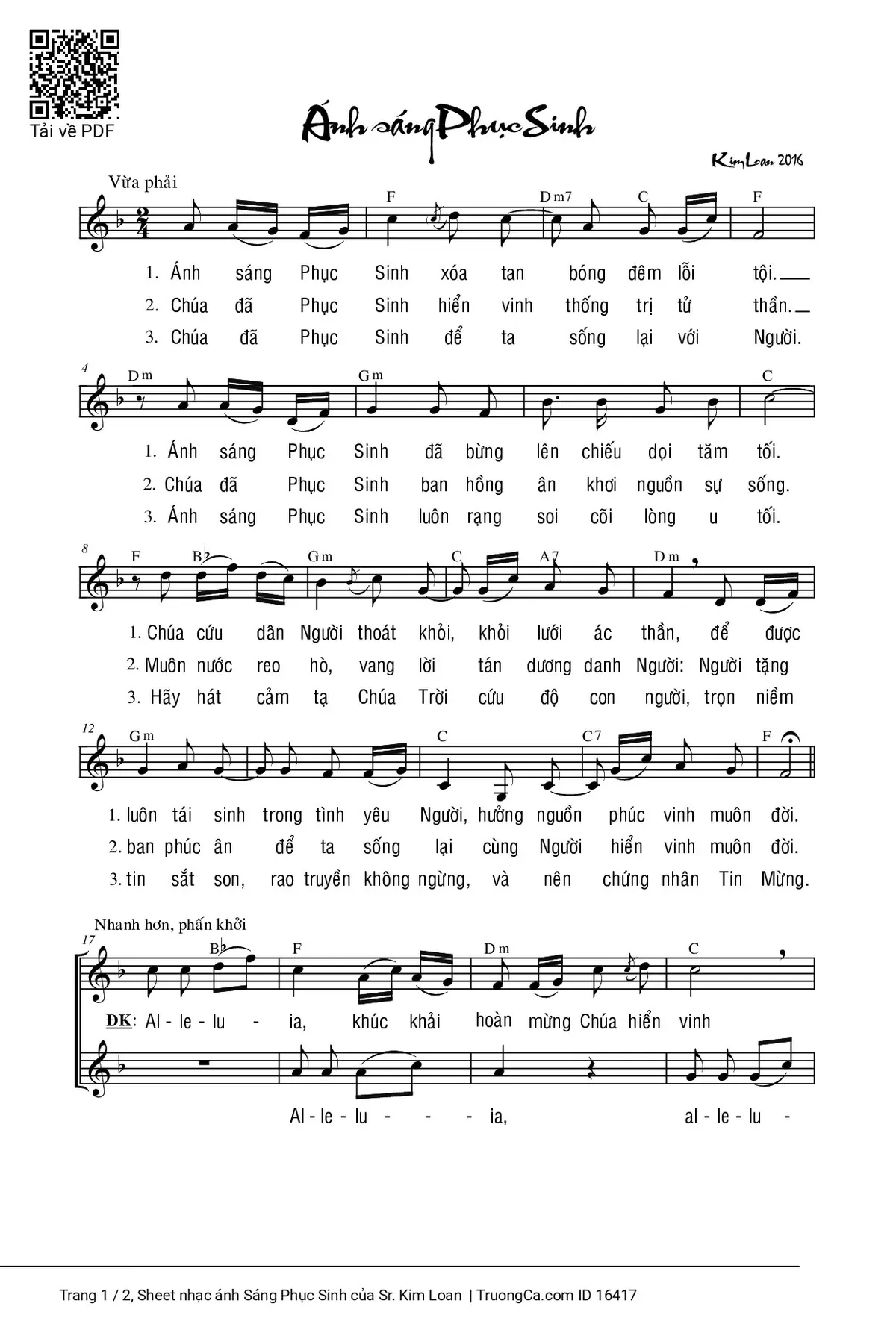 Các sheet PDF cùng tên ánh Sáng Phục Sinh: