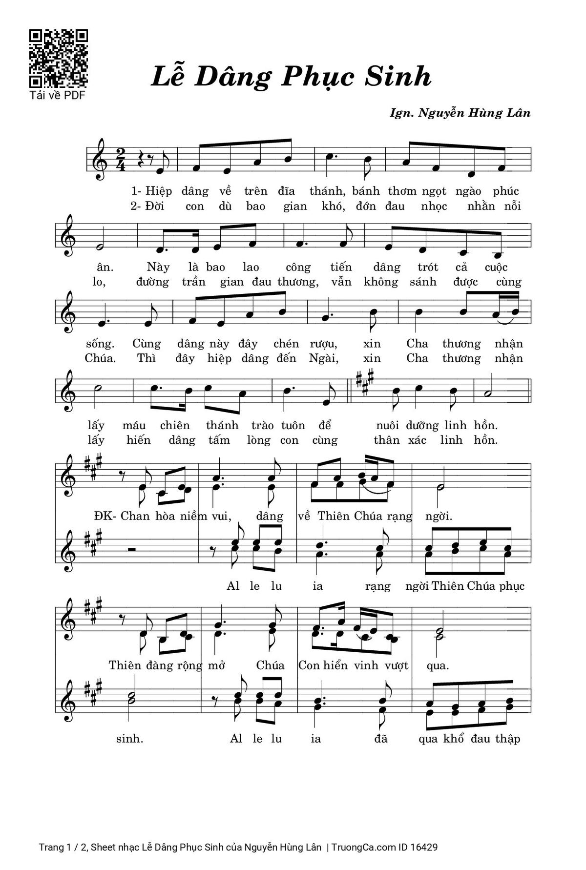 Các sheet PDF cùng tên Lễ Dâng Phục Sinh: