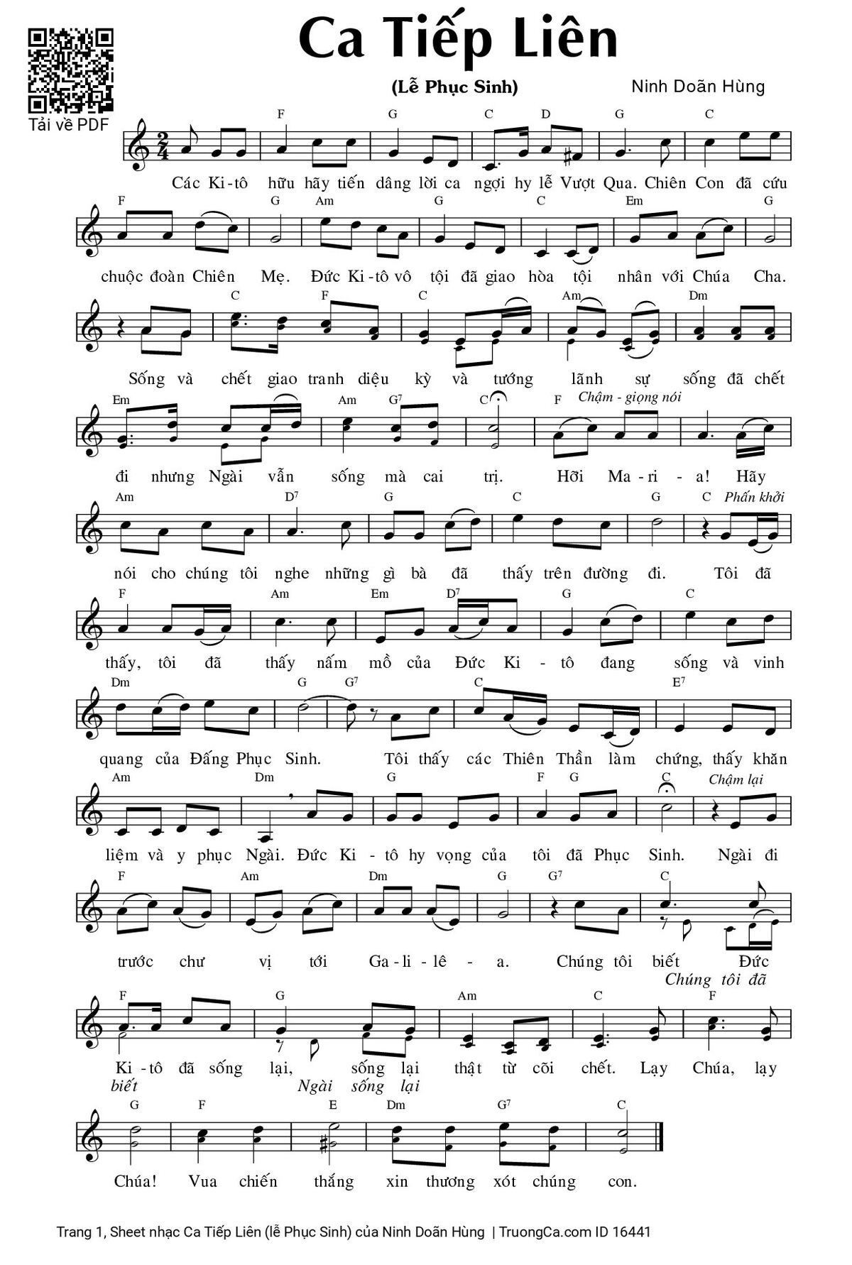 Các sheet PDF tương tự Ca Tiếp Liên (lễ Phục Sinh):