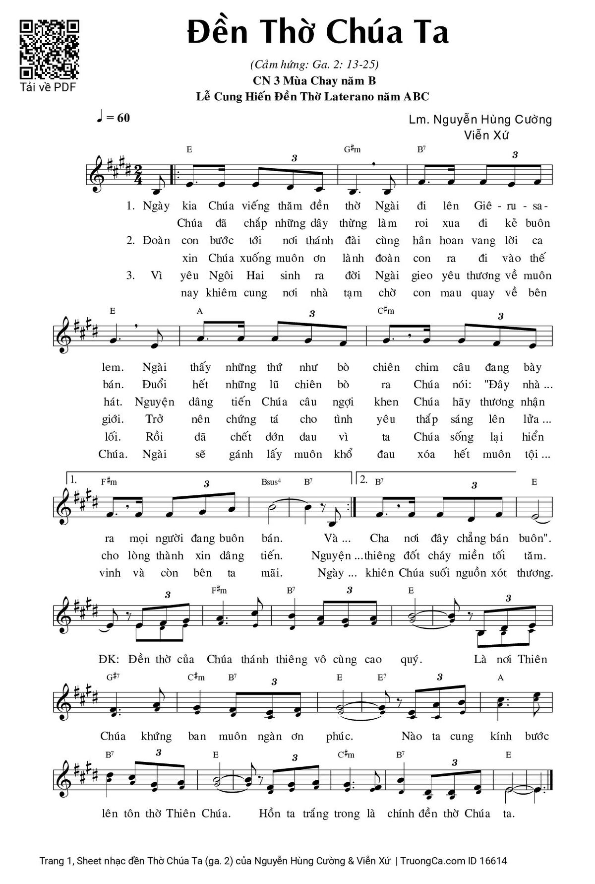 Điệp khúc: Đền thờ của Chúa thánh thiêng vô cùng cao quý. Là nơi Thiên Chúa khứng ban muôn ngàn ơn phúc Nào ta cung kính bước lên tôn thờ Thiên Chúa Hồn ta trắng trong là chính đền thờ Chúa ta