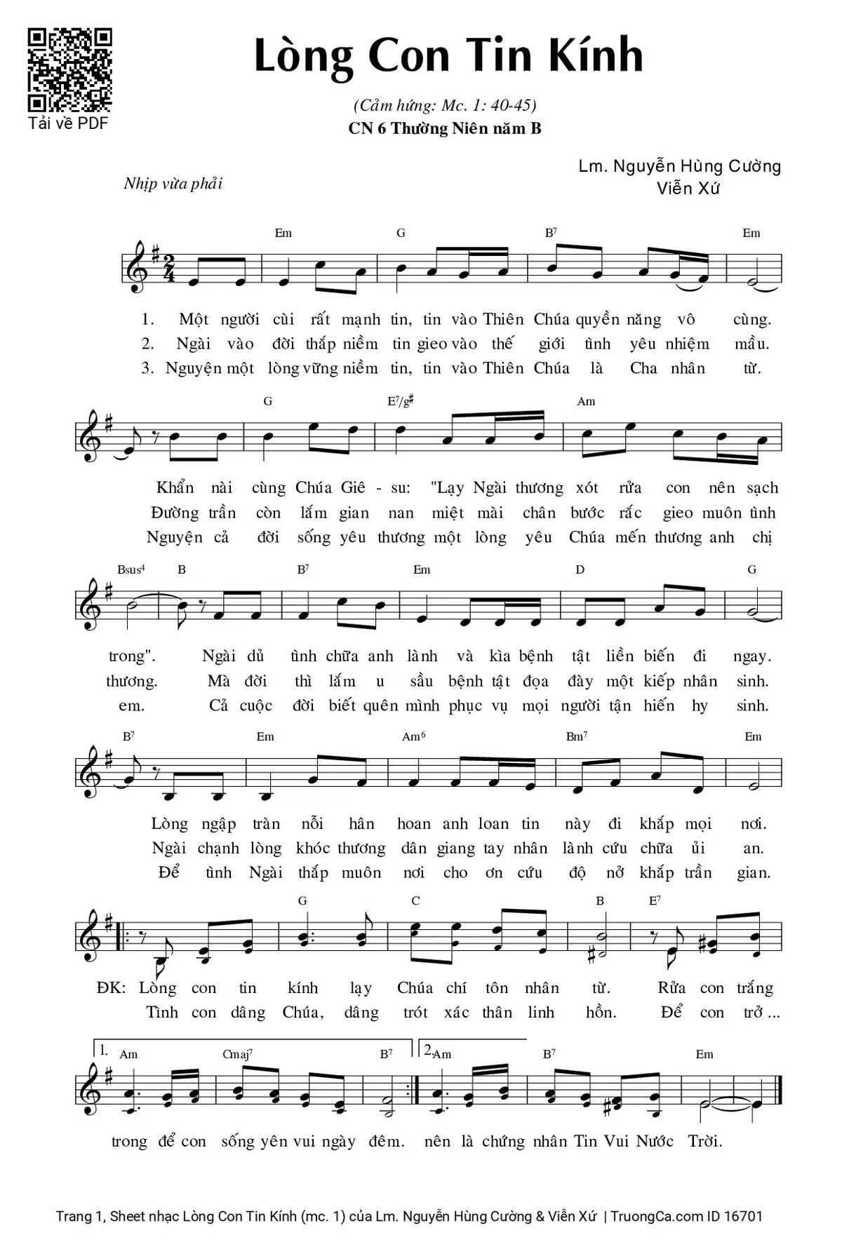 Các sheet PDF tương tự Lòng Con Tin Kính (mc. 1):