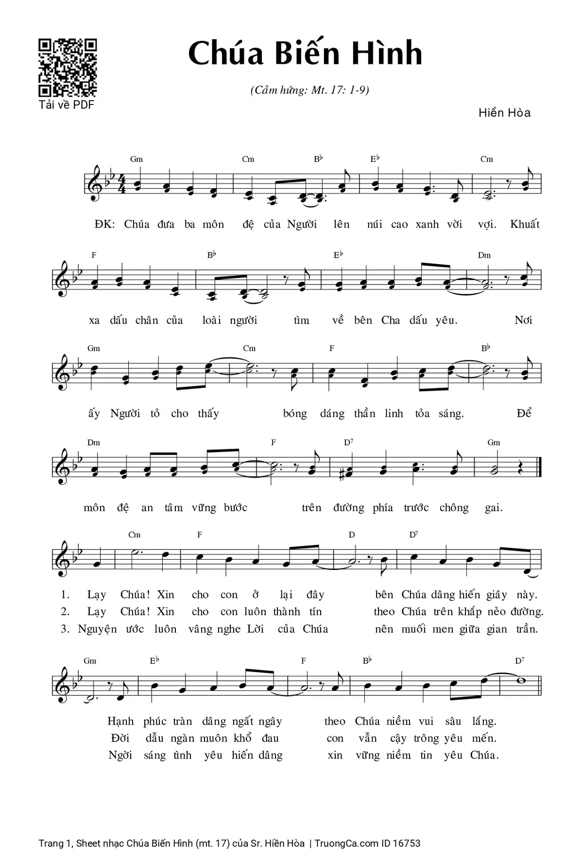 Các sheet PDF tương tự Chúa Biến Hình (mt. 17):