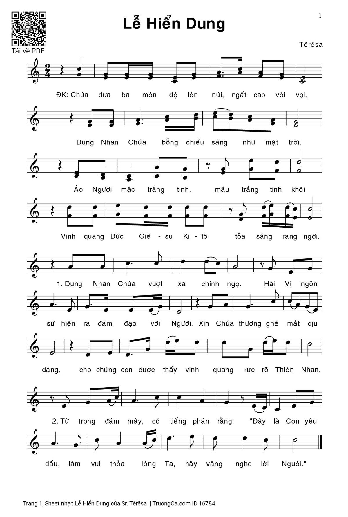 Các sheet PDF tương tự Lễ Hiển Dung: