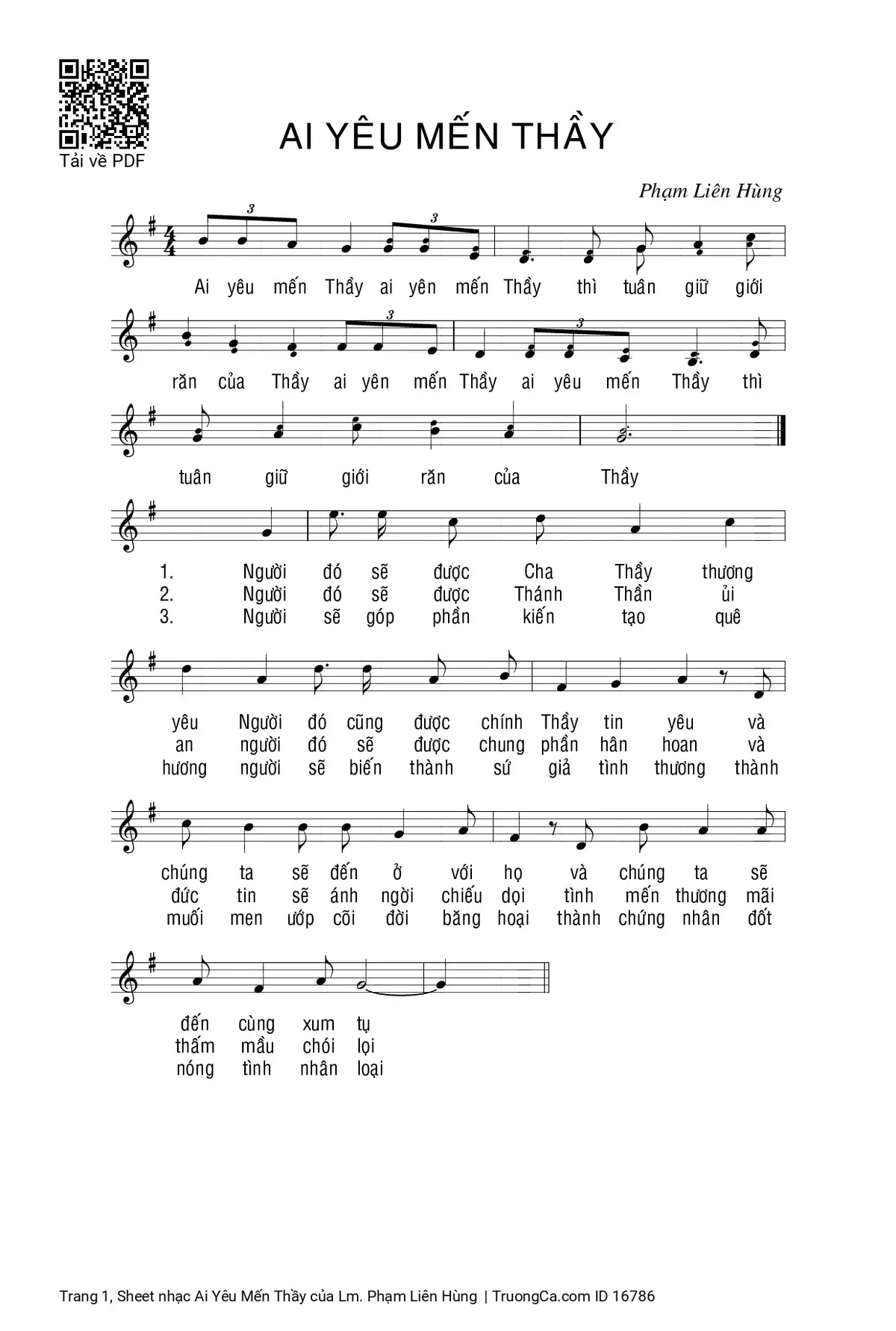 Điệp khúc. Ai yêu mến Thầy, ai yêu mến Thầy. Thì tuân giữ giới răn của Thầy. Ai yêu mến Thầy, ai yêu mến Thầy. Thì tuân giữ giới răn của Thầy
