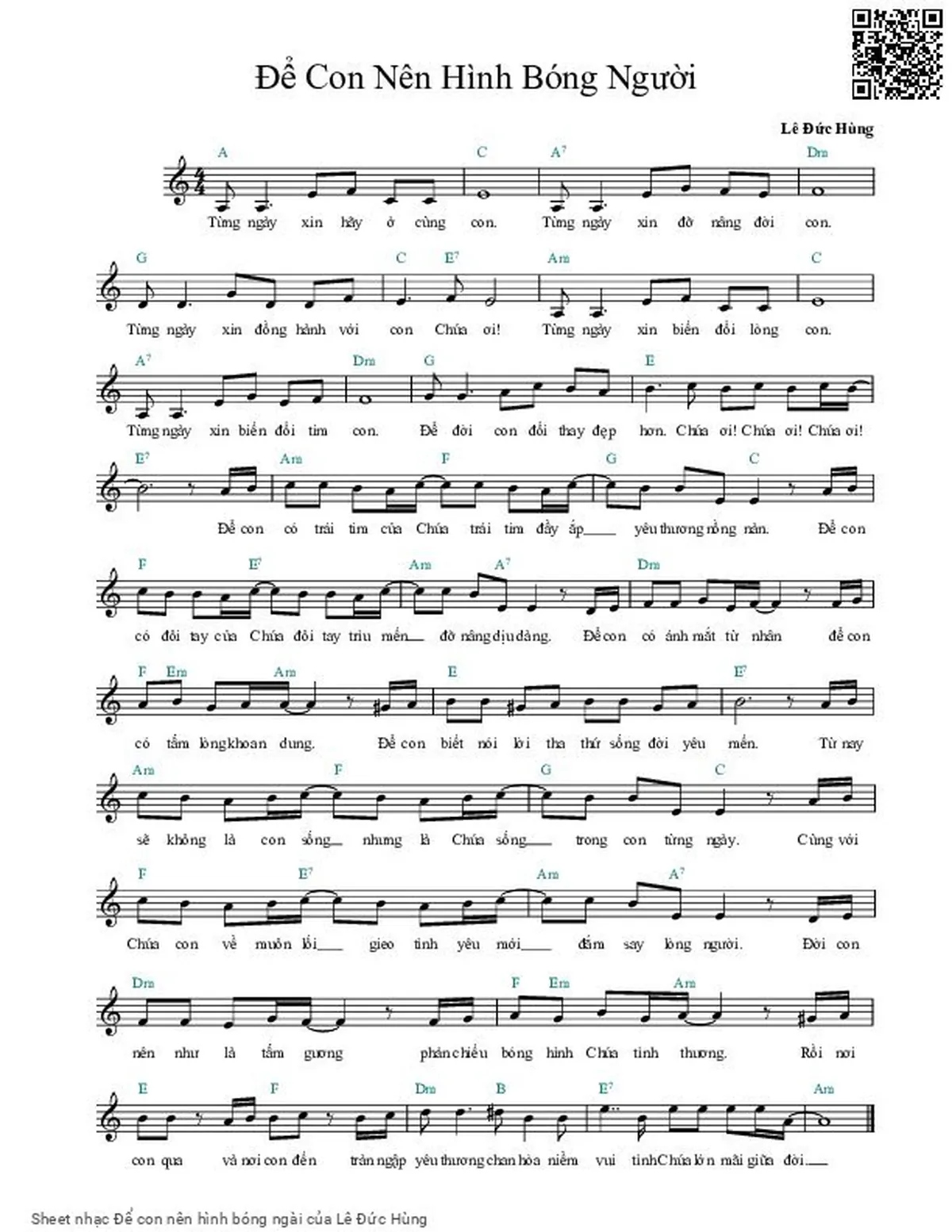 Để con [Am] nên như là tấm gương phản chiếu [Em] bóng hình Chúa tình thương