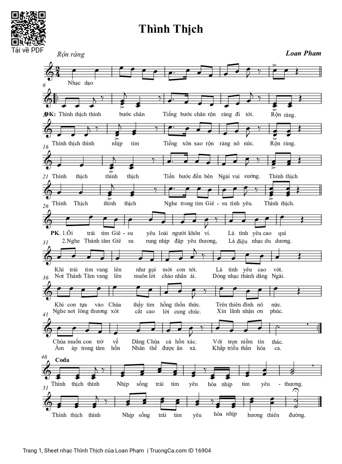 Điệp khúc: Thình thịch thình bước chân. Tiếng bước chân rộn rang đi tới. Rộn rang. Thình thịch thình nhịp tim. Tiếng xôn xao rộn rang nô nức. Rộn rang. Thình thịch thình thịch, tiến bước đến bên Ngài vui sướng. Thình thịch. Thình thịch thình thịch, nghe trong tim Giê- su tình yêu. Thình thịch.
