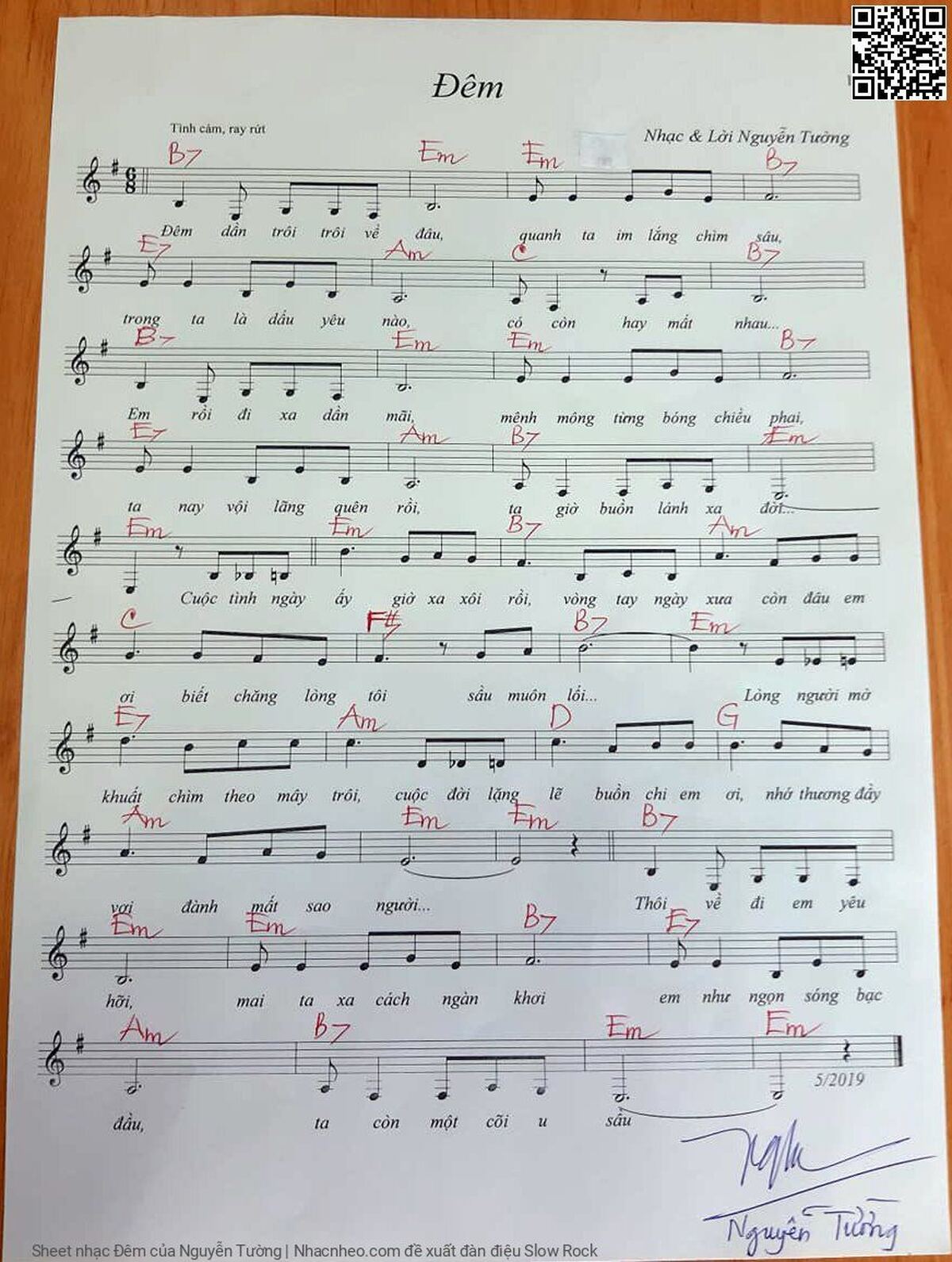 Nguyễn Tường Đêm dần trôi trôi về đâu Quanh ta im lắng chìm sâu [PDF] [Sheet] [Lời H.A] [Mp4/Midi]