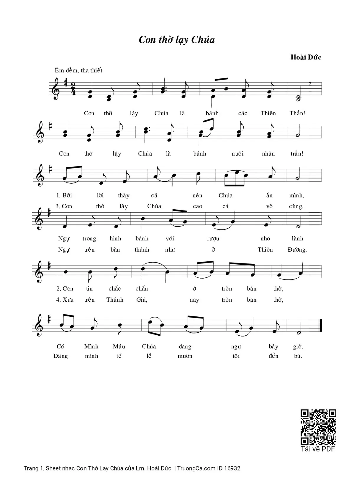 Các sheet PDF cùng tên Con Thờ Lạy Chúa: