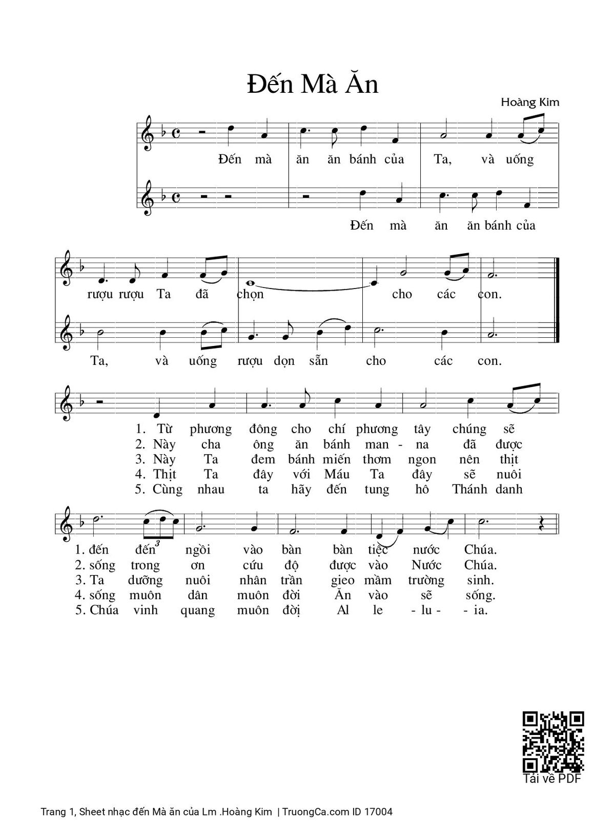 5. Cùng nhau ta hãy đến tung hô Thánh danh Chúa vinh quang, muôn đời, Al-le -lu-ia.