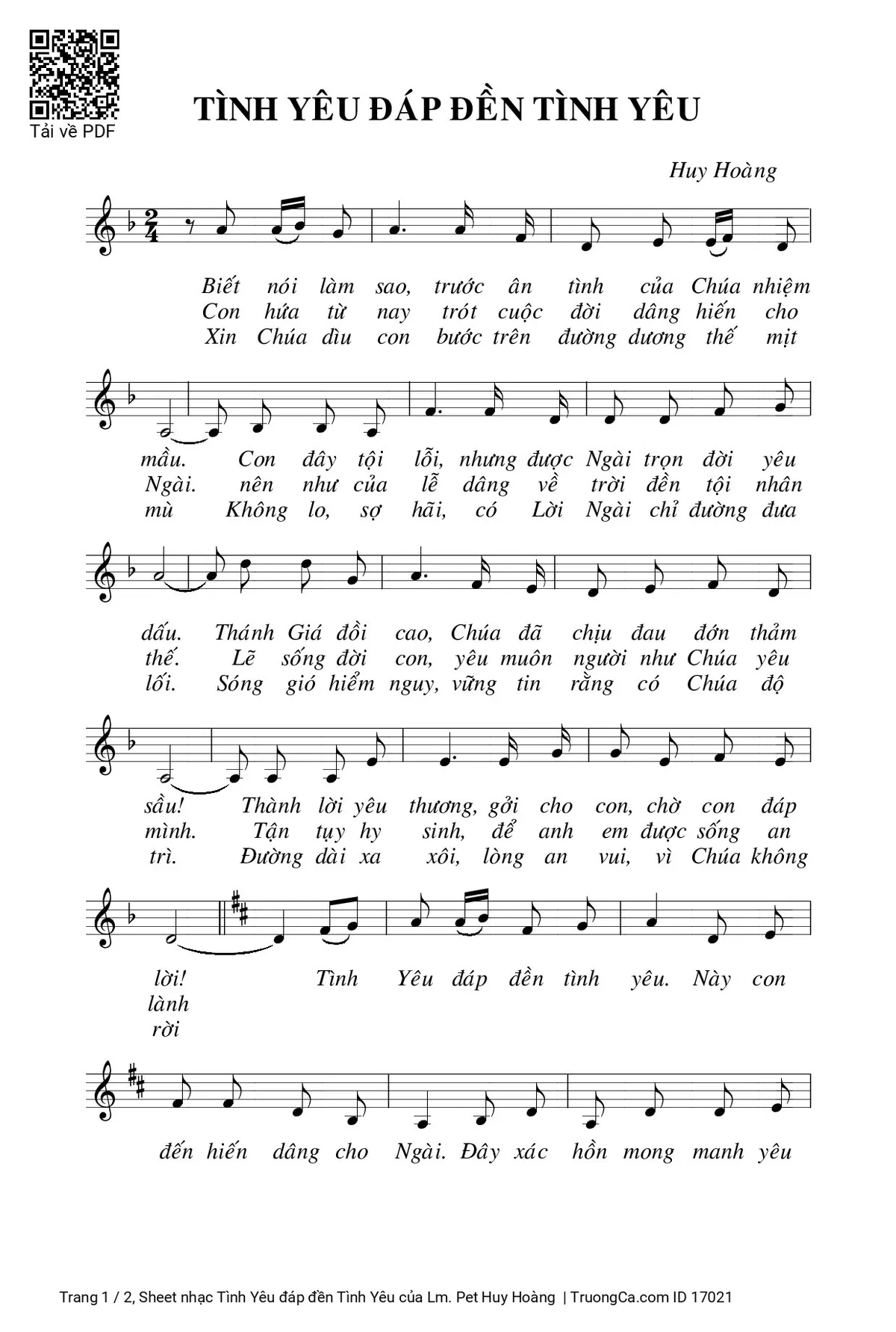 Trang 1 của Sheet nhạc PDF bài hát Tình Yêu đáp đền Tình Yêu - Lm. Pet Huy Hoàng