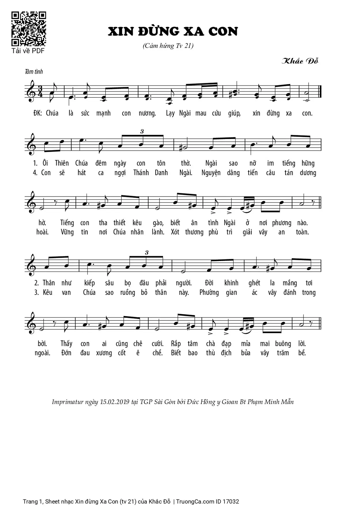 Điệp khúc: Chúa là sức mạnh con nương. Lạy Ngài mau cứu giúp, xin đừng xa con.