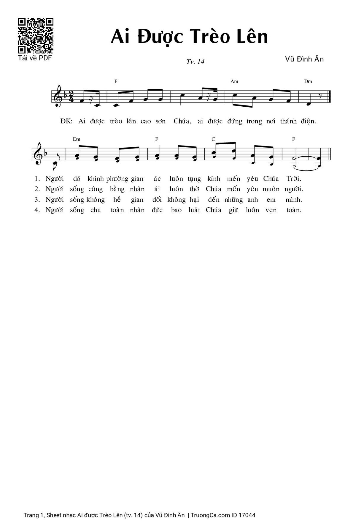 Các sheet PDF tương tự Ai được Trèo Lên (tv. 14):