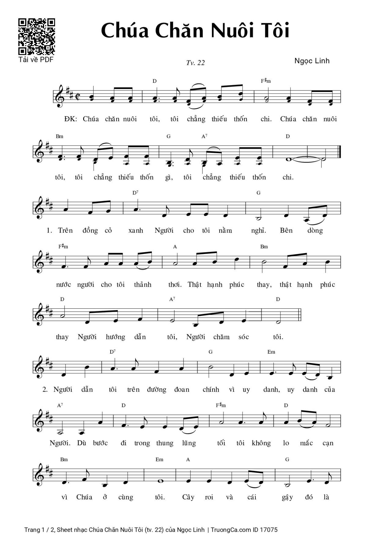 Các sheet PDF tương tự Chúa Chăn Nuôi Tôi (tv. 22):
