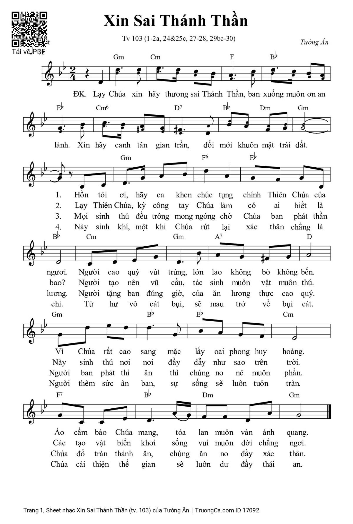 Các sheet PDF tương tự Xin Sai Thánh Thần (tv. 103):