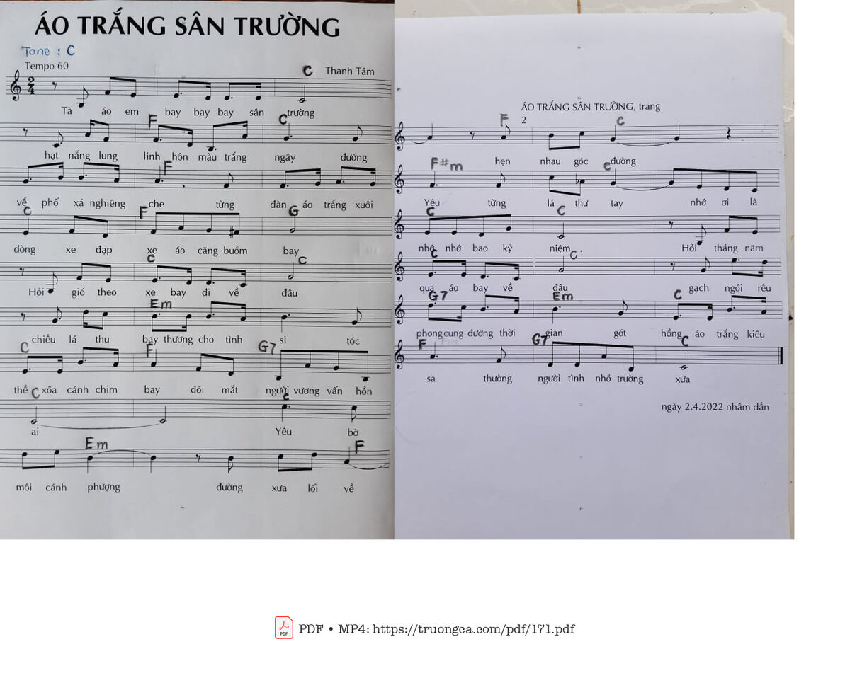 Phan Thanh Tâm Tà áo em bay bay bay sân trường Hạt nắng lung linh hôn màu trắng ngây [PDF] [Sheet] [Lời H.A] [Mp4/Midi]