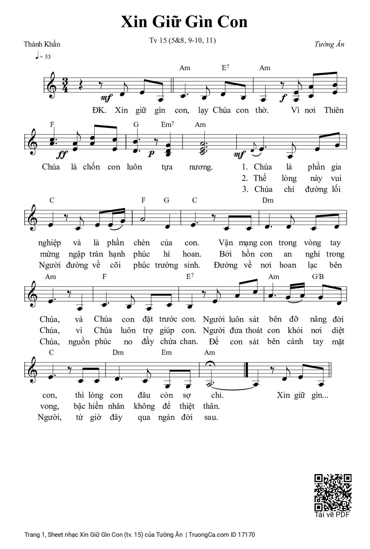 Các sheet PDF tương tự Xin Giữ Gìn Con (tv. 15):
