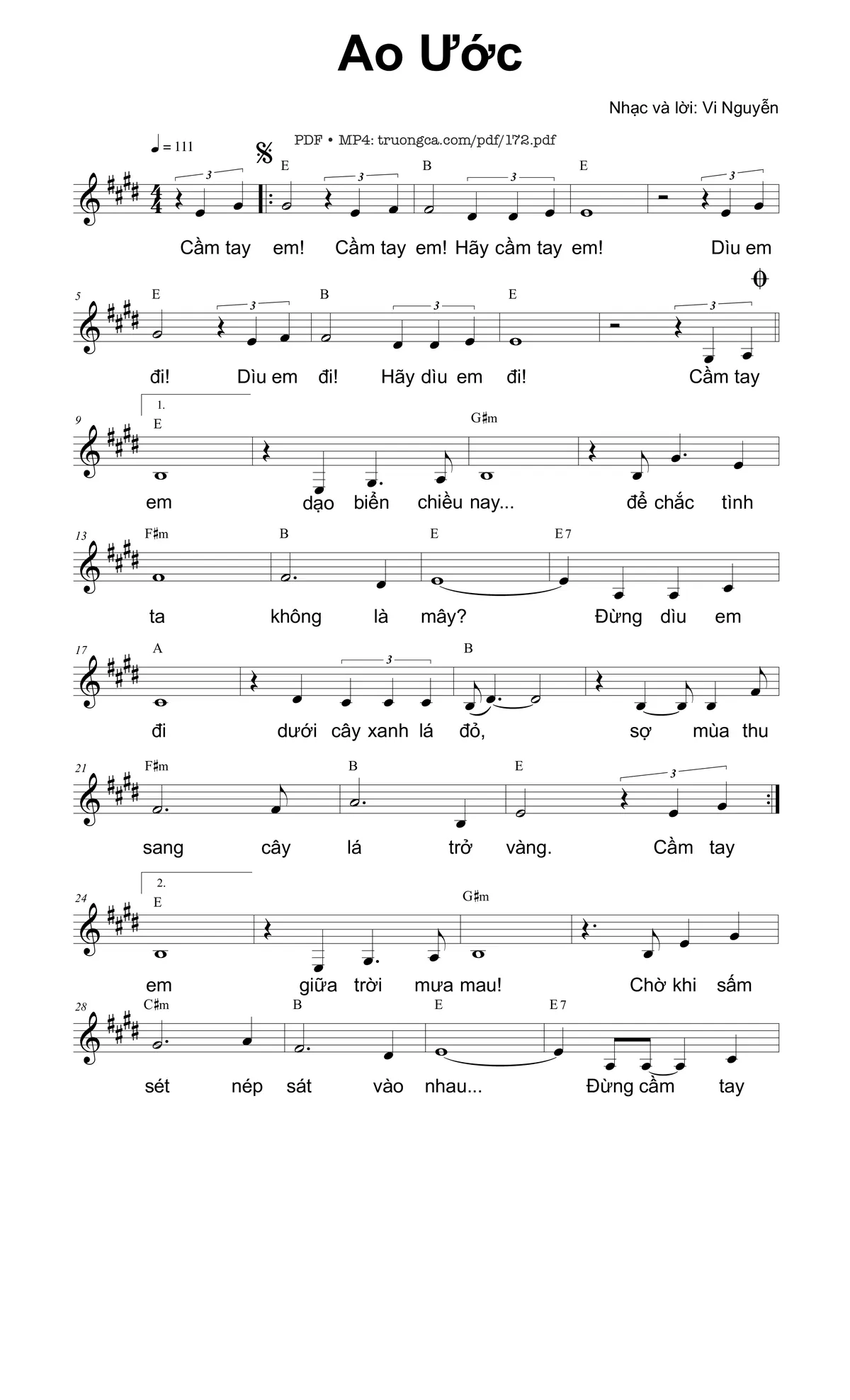 Vi Nguyễn Cầm tay em Cầm tay em Hãy cầm tay em [PDF] [Sheet] [Lời H.A] [Mp4/Midi]