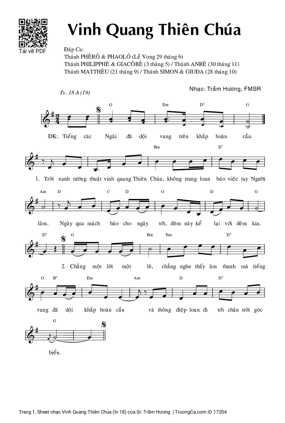 Các sheet PDF tương tự Vinh Quang Thiên Chúa (tv 18):
