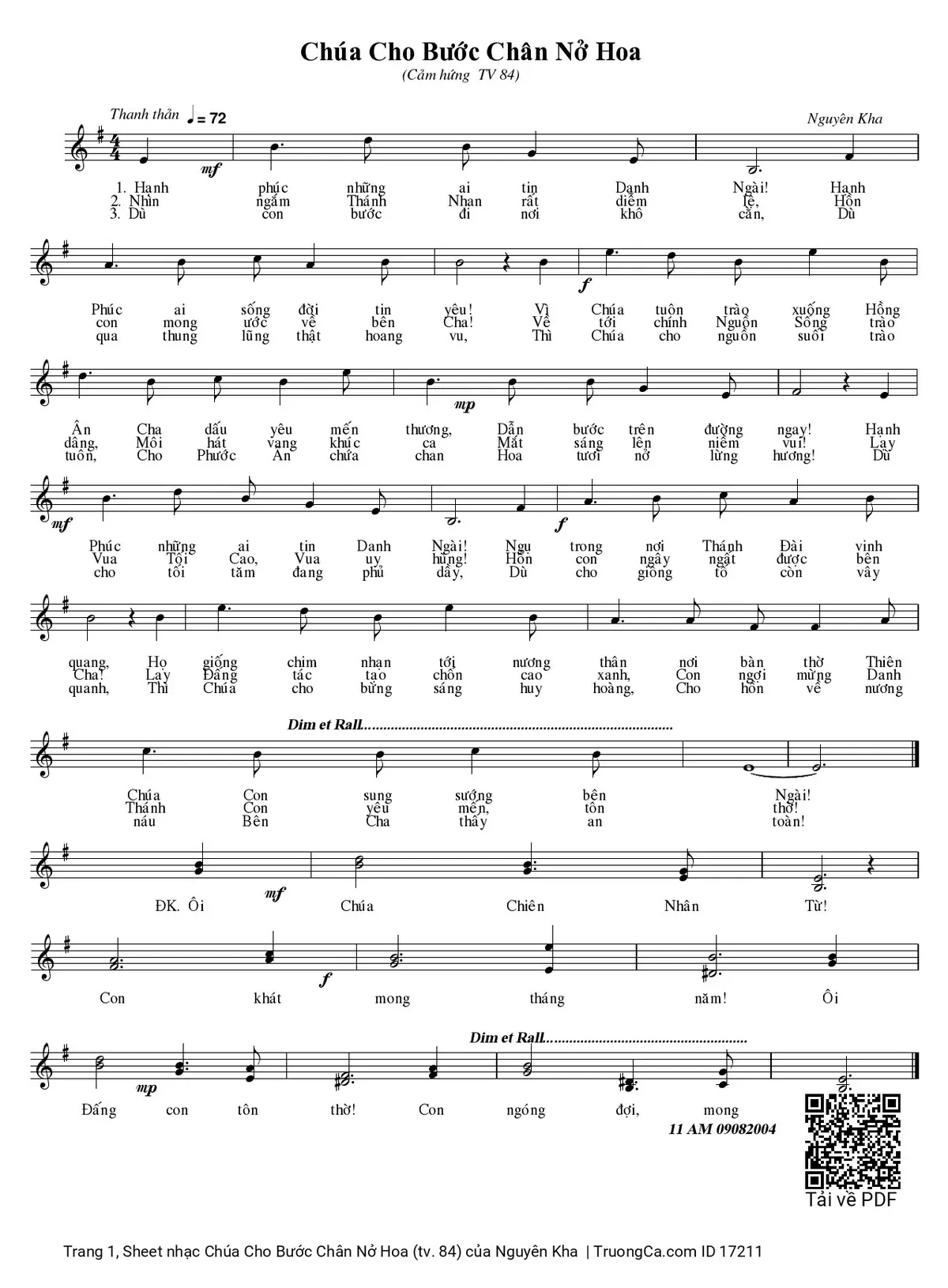 Các sheet PDF tương tự Chúa Cho Bước Chân Nở Hoa (tv. 84):