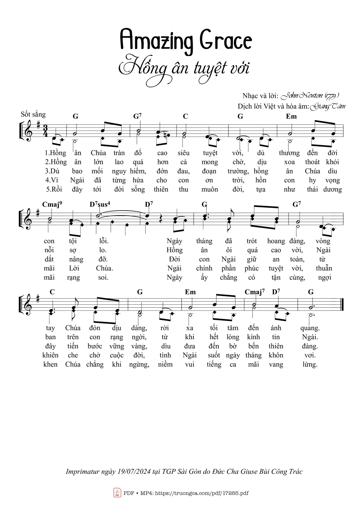 Các sheet PDF tương tự Amazing Grace - Hồng ân Tuyệt Vời: