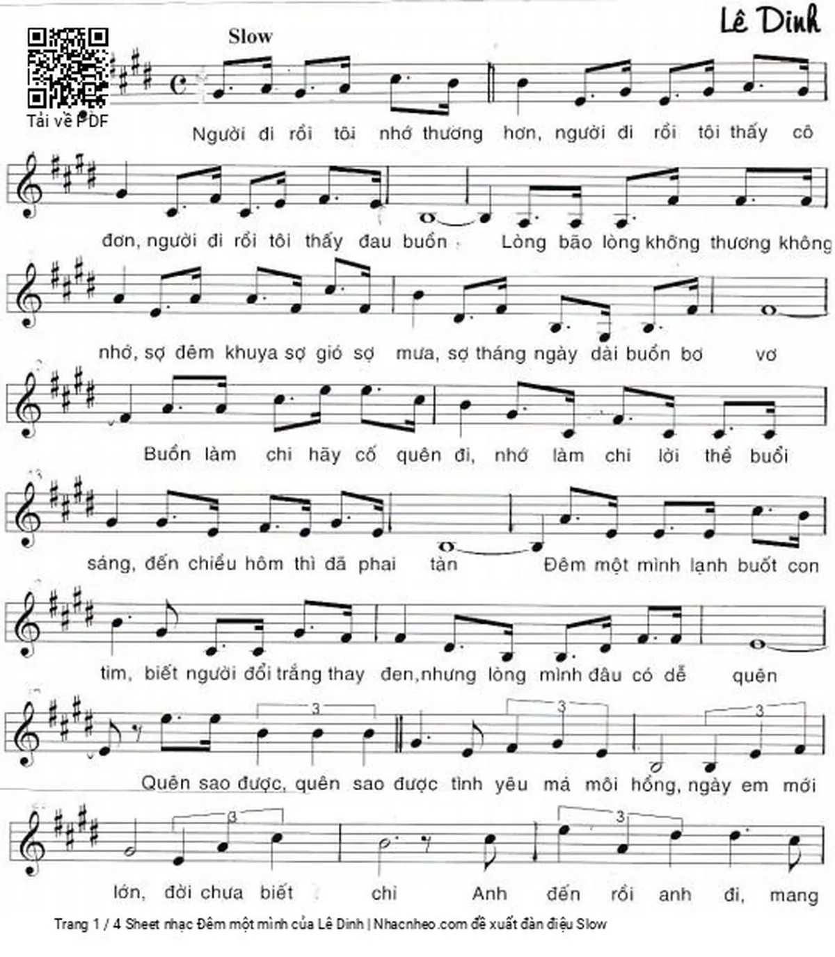 Lê Dinh Người đi rồi tôi nhớ thương hơn Người đi rồi tôi thấy cô đơn [PDF] [Sheet] [Lời H.A] [Mp4/Midi]