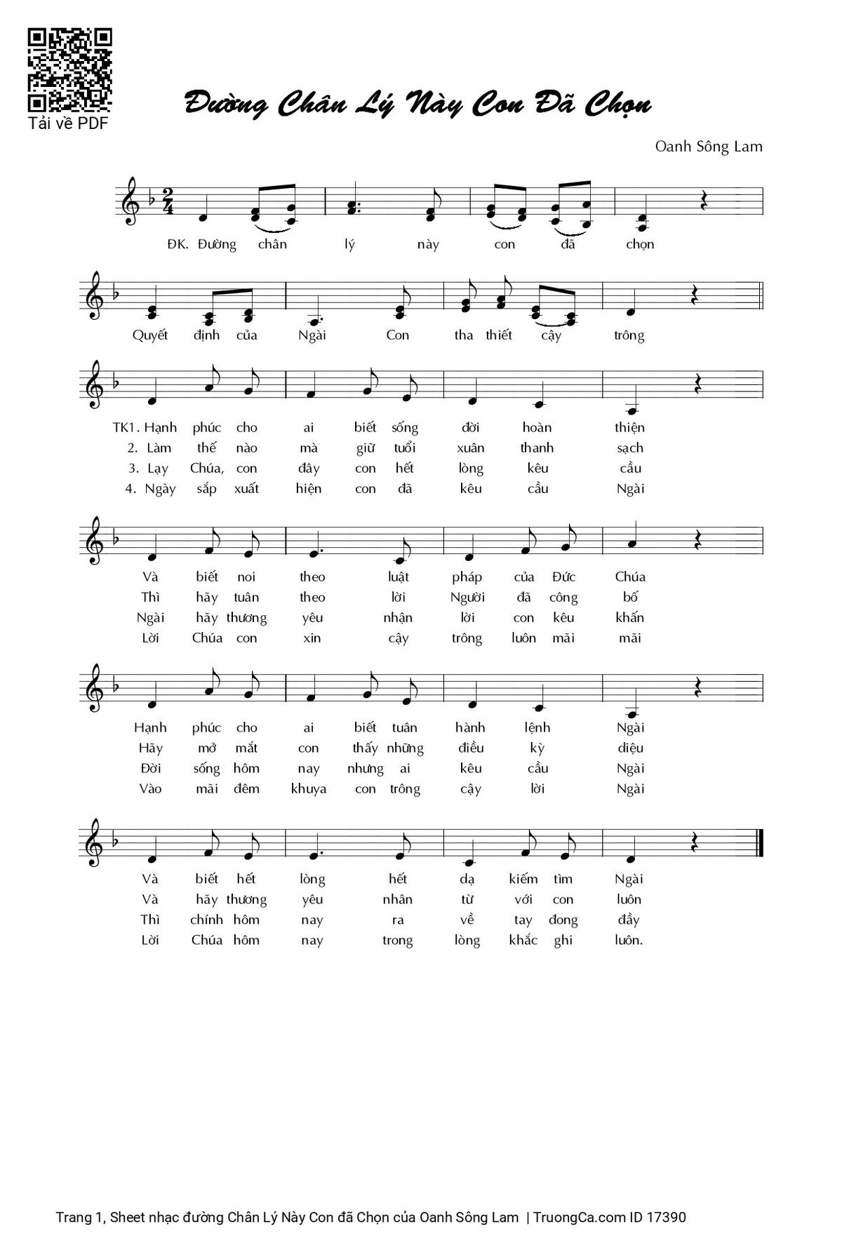 Các sheet PDF tương tự đường Chân Lý Này Con đã Chọn: