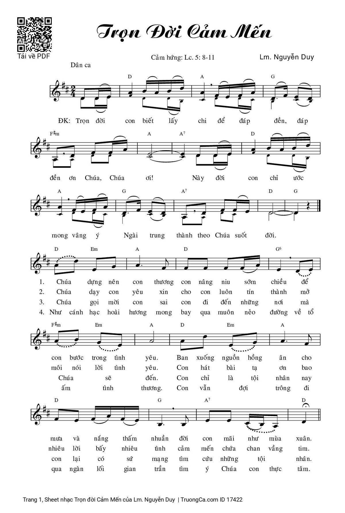 Các sheet PDF cùng tên Trọn đời Cảm Mến: