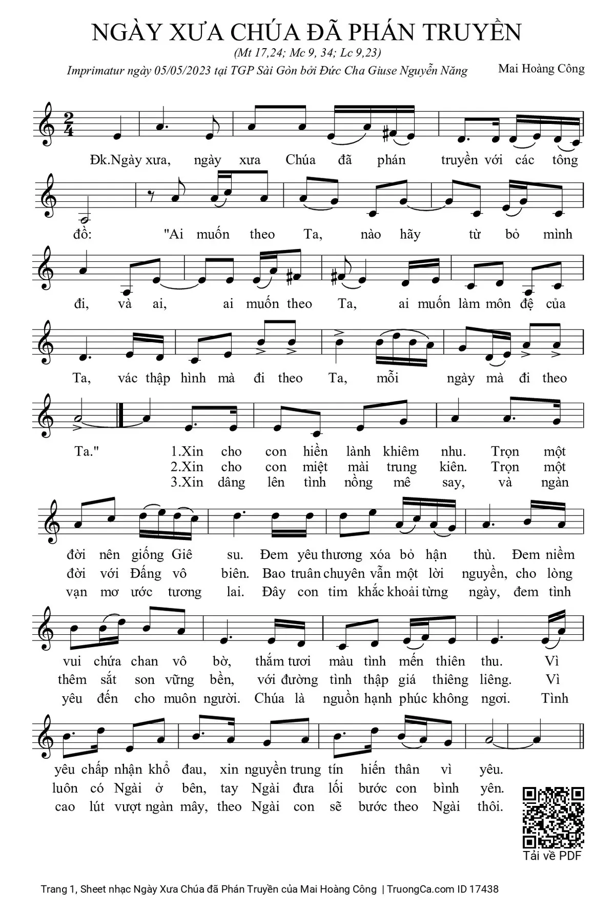 Các sheet PDF tương tự Ngày Xưa Chúa đã Phán Truyền: