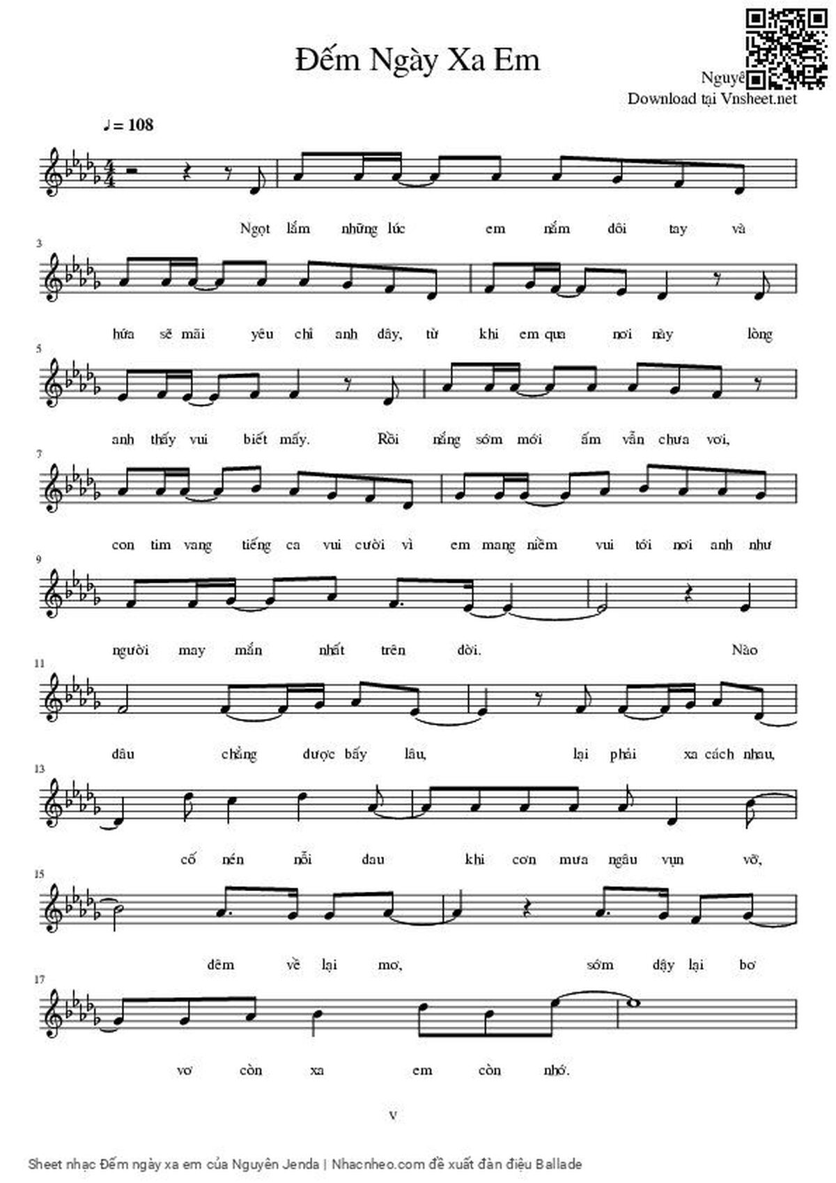 Chọn nút dấu + để tăng tông lên nửa cung, nút dấu - để giảm tông xuống nửa cung. Rê chuột vào hợp âm để xem các thế bấm hợp âm của bài hát Đếm ngày xa em.