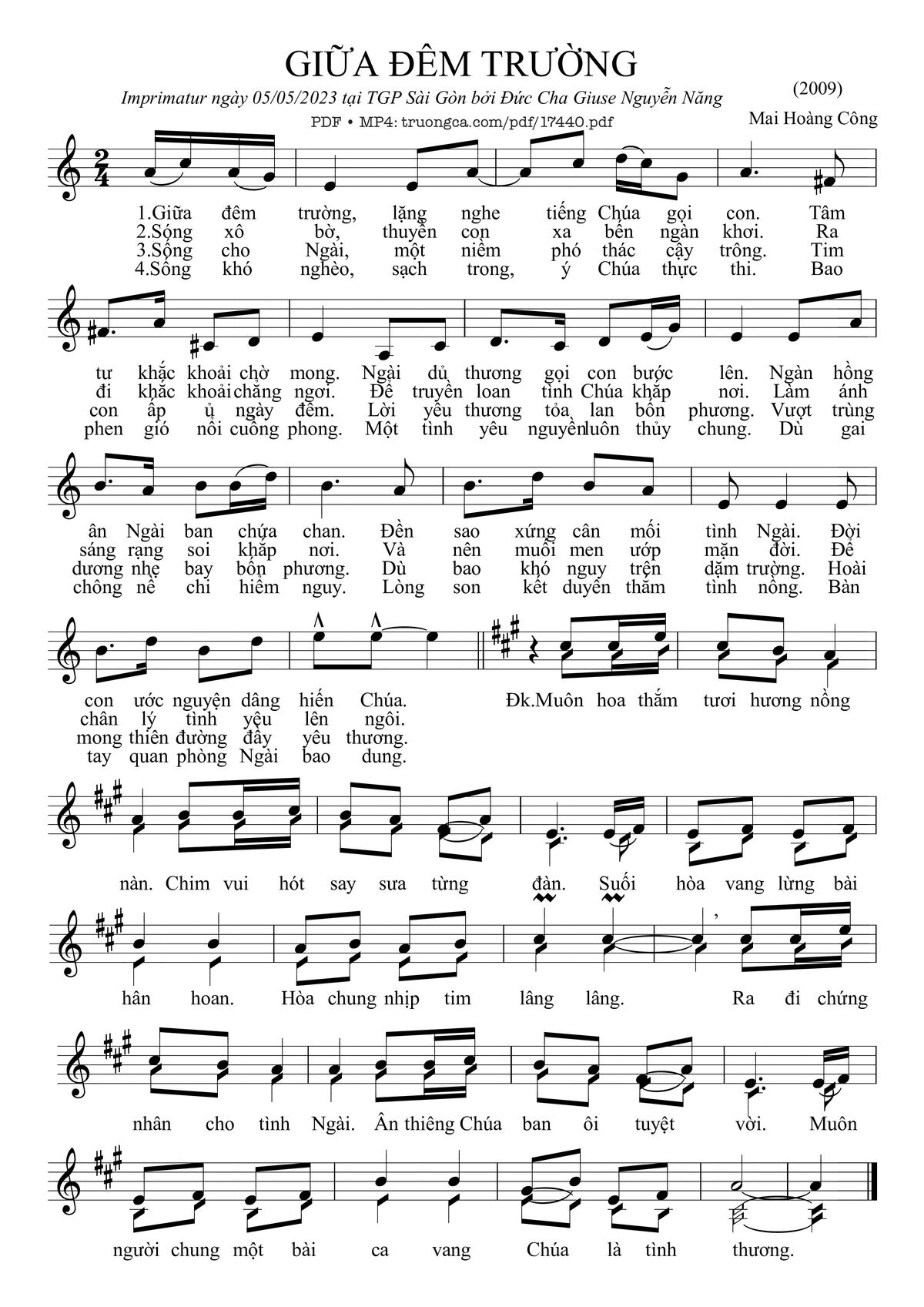 Câu đầu: Giữa đêm trường lặng nghe tiếng Chúa gọi con