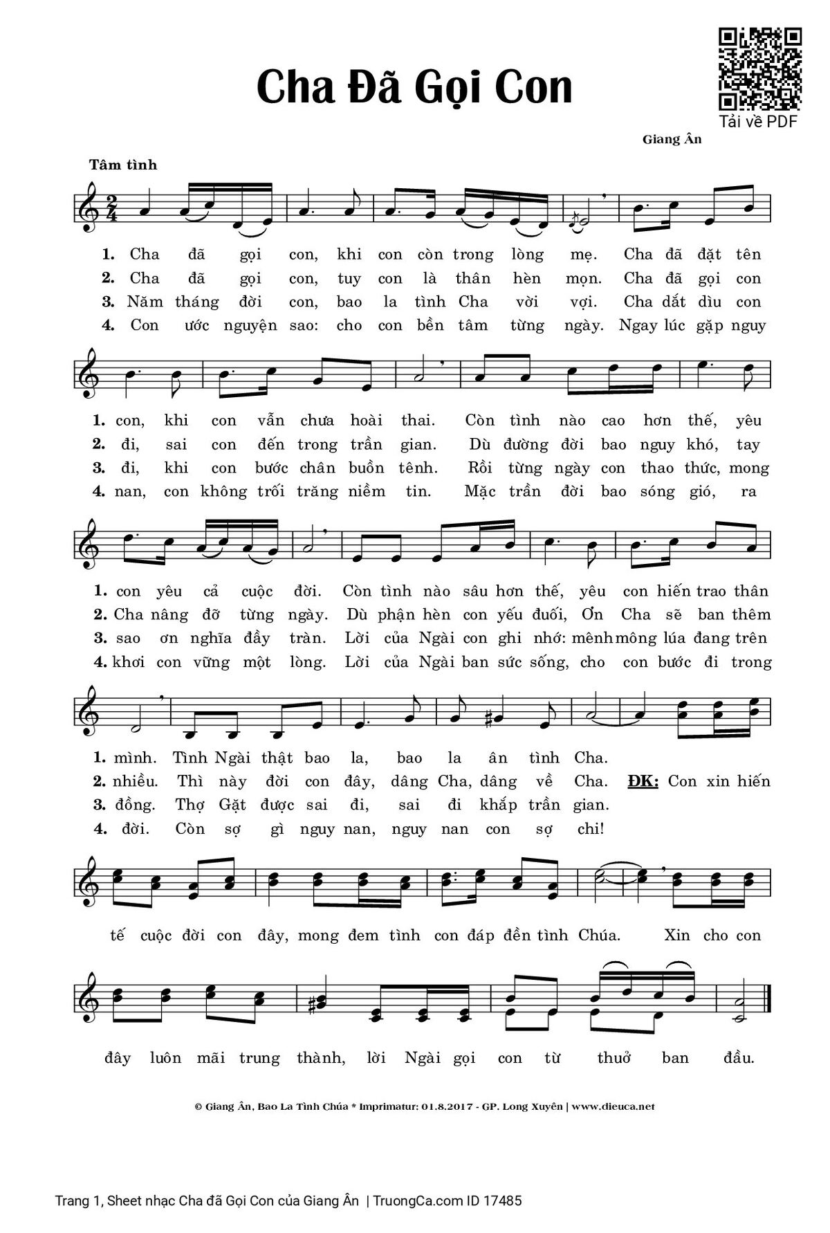 Các sheet PDF tương tự Cha đã Gọi Con: