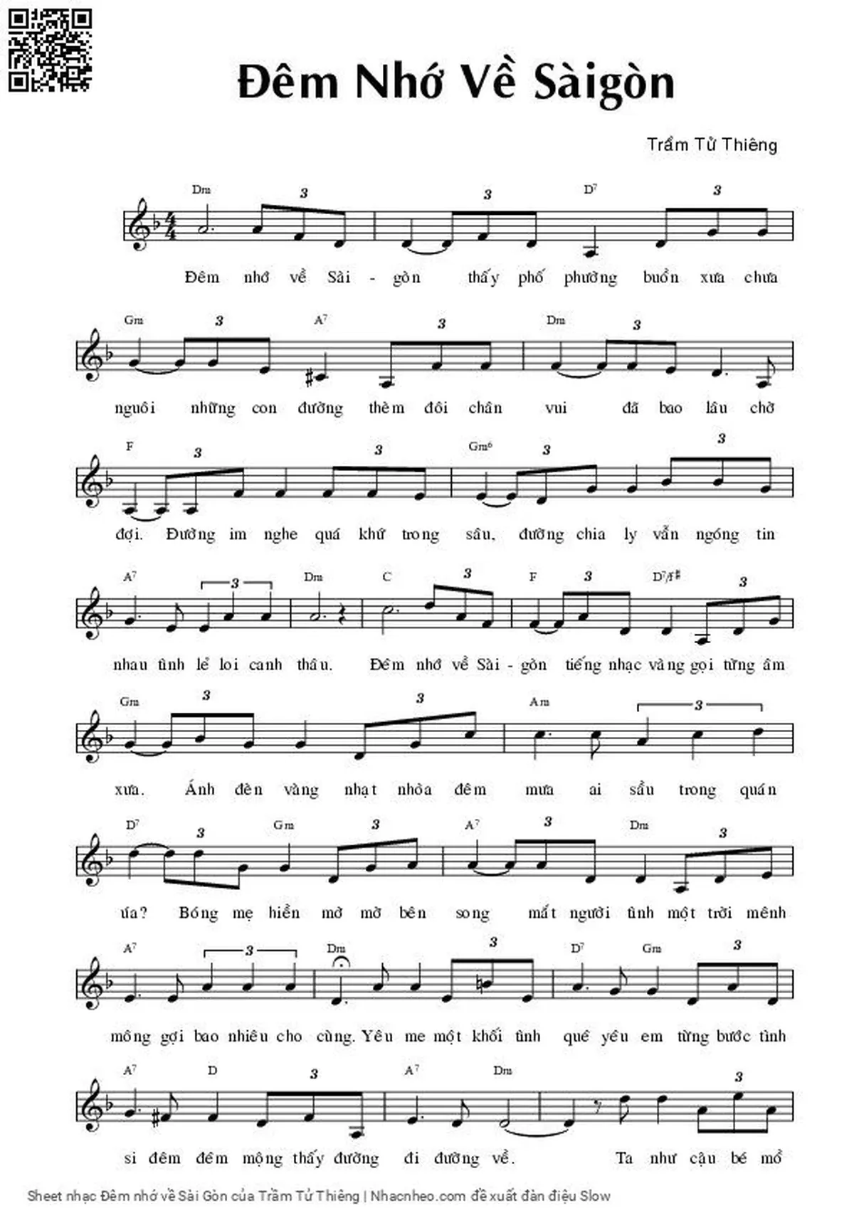 Trầm Tử Thiêng Đêm nhớ về Sài Gòn Thấy phố phường buồn xưa chưa nguôi [PDF] [Sheet] [Lời H.A] [Mp4/Midi]