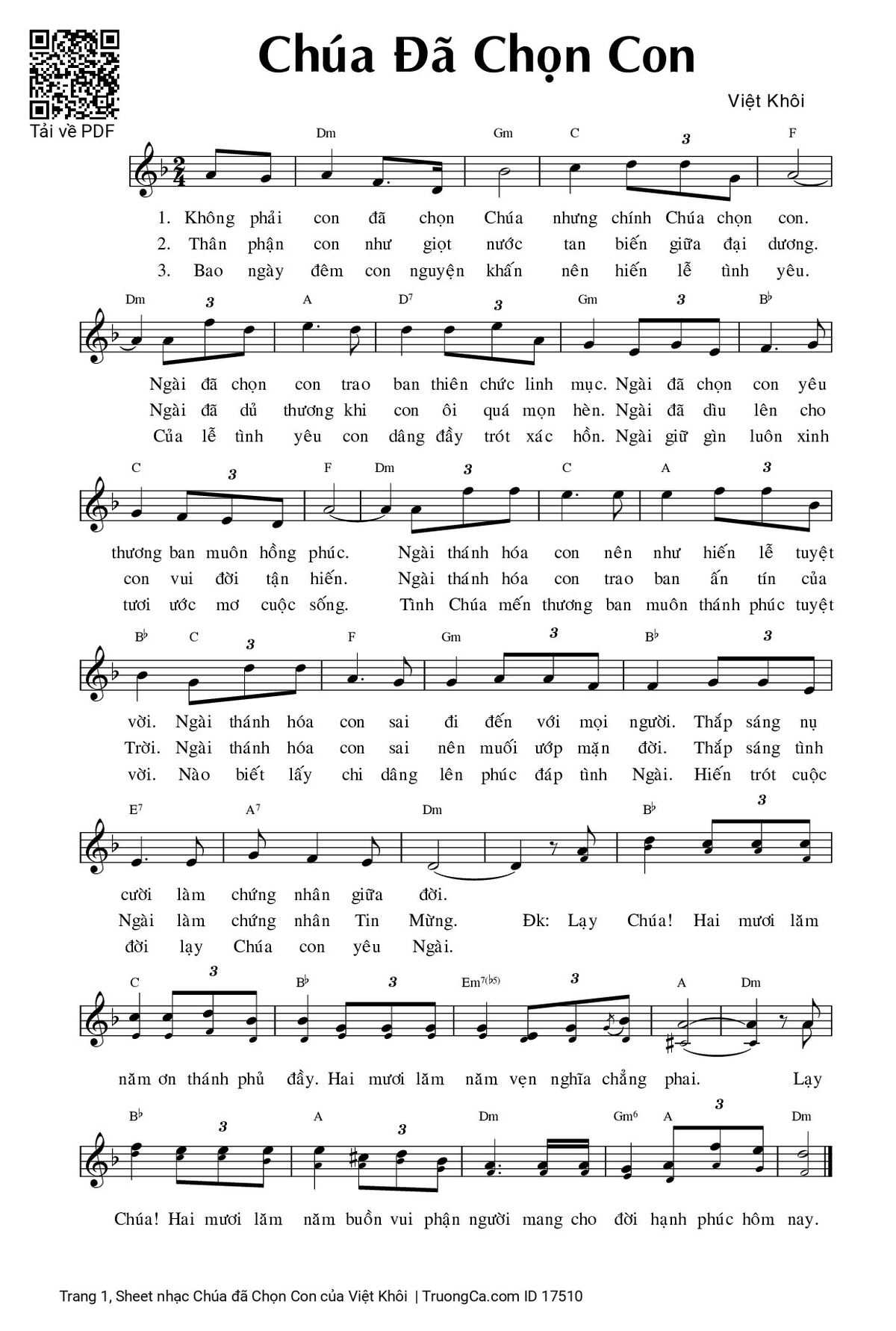 Các sheet PDF tương tự Chúa đã Chọn Con: