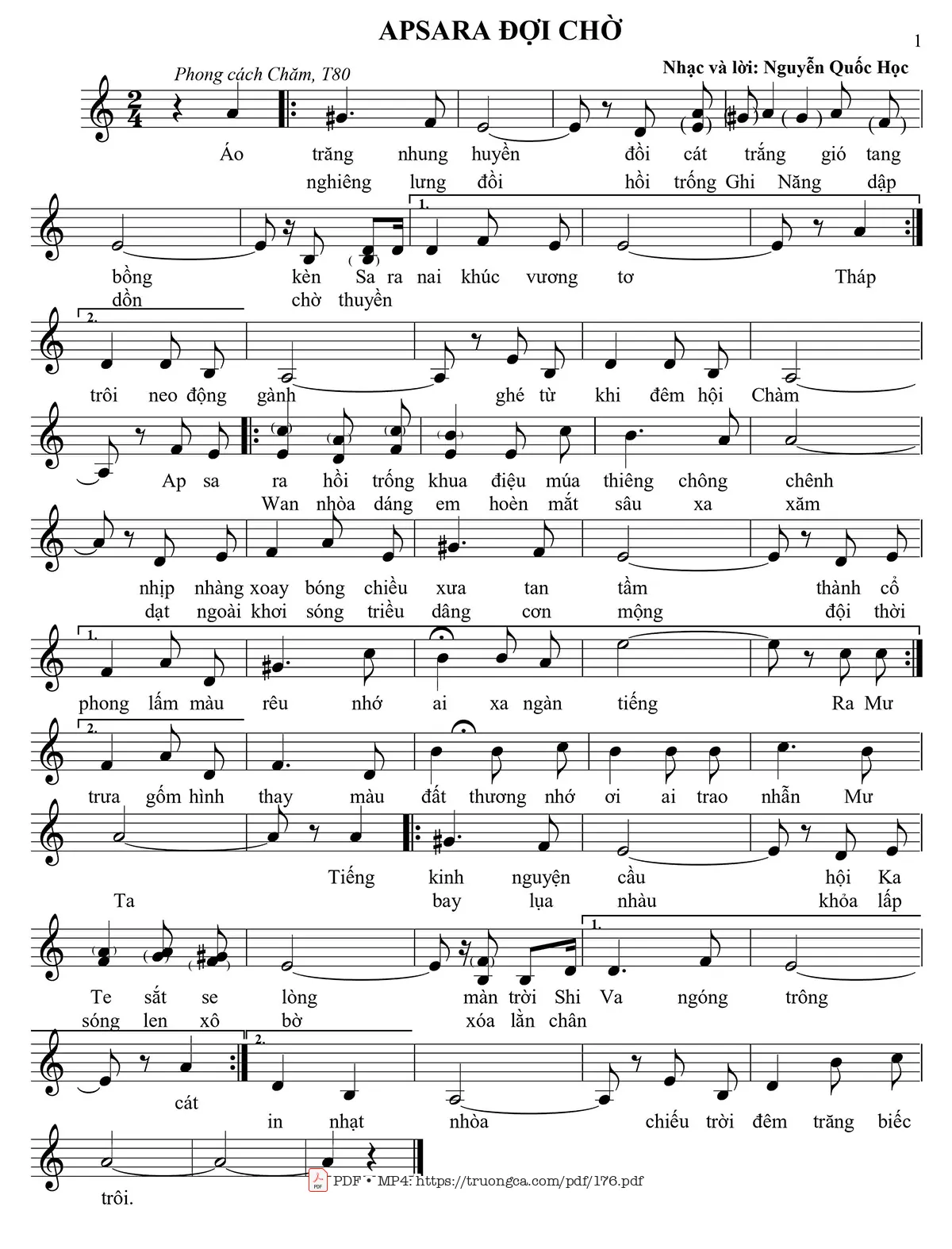 Phần nghe hát Apsara đợi chờ (Nguyễn Quốc Học) được nhúng từ Youtube, Musescore hoặc link ngoài và chịu sự kiểm soát bản quyền của bên thứ ba đó, vì vậy có thể bị xóa hoặc chèn quảng cáo bất kỳ lúc nào. Nếu bạn không nghe - xem được ca sĩ hát tức là đã bị Youtube hoặc Musescore kiểm soát.