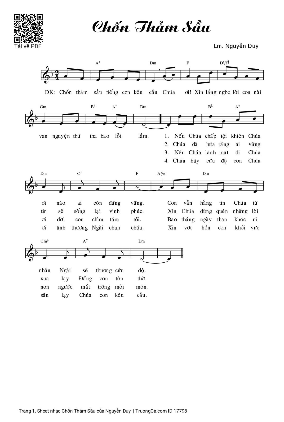 Điệp khúc: Chốn thảm sầu tiếng con kêu cầu Chúa ơi! Xin lắng nghe lời con nài van, nguyện thứ tha bao lỗi lầm.