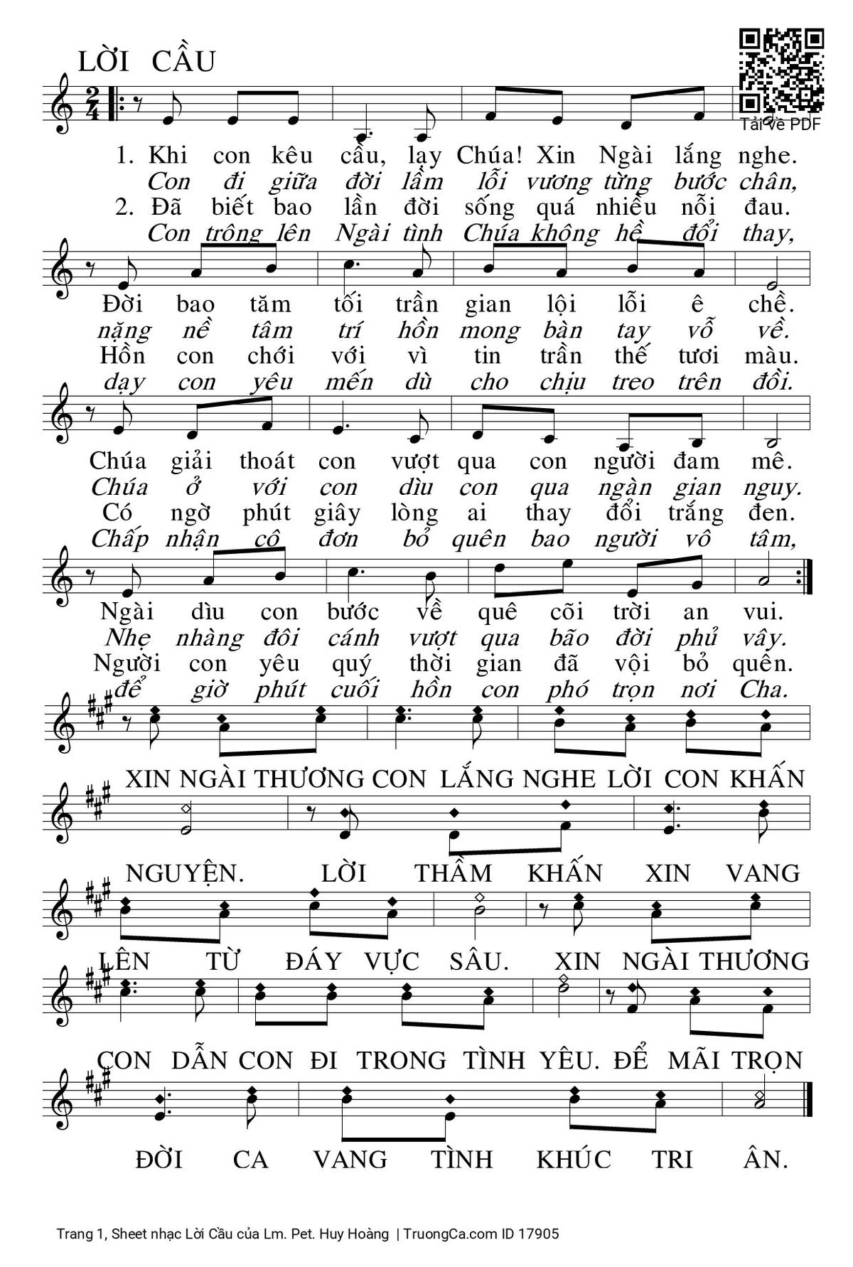 Câu đầu: Khi con kêu cầu lạy Chúa Xin Ngài lắng nghe