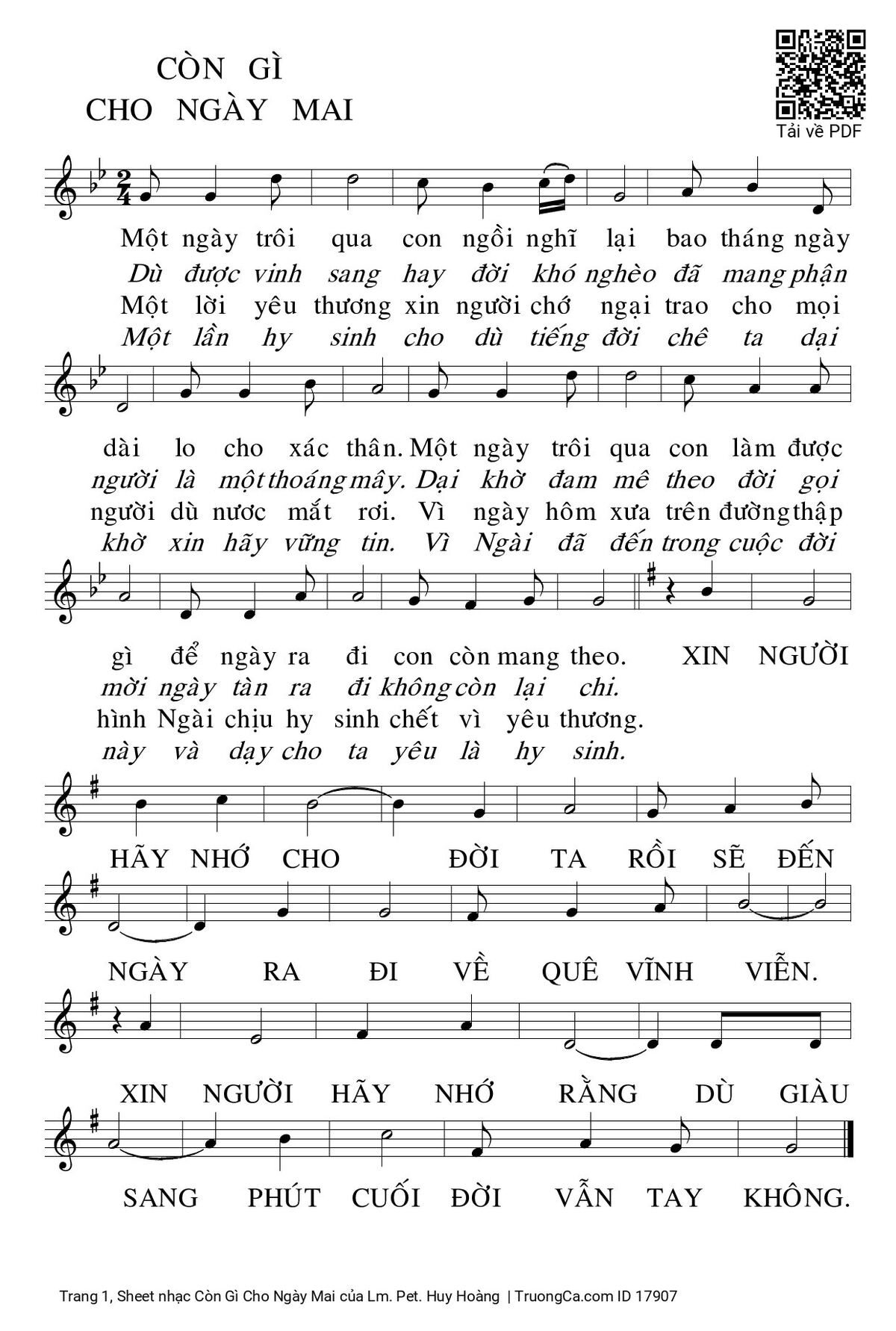 Các sheet PDF cùng tên Còn Gì Cho Ngày Mai: