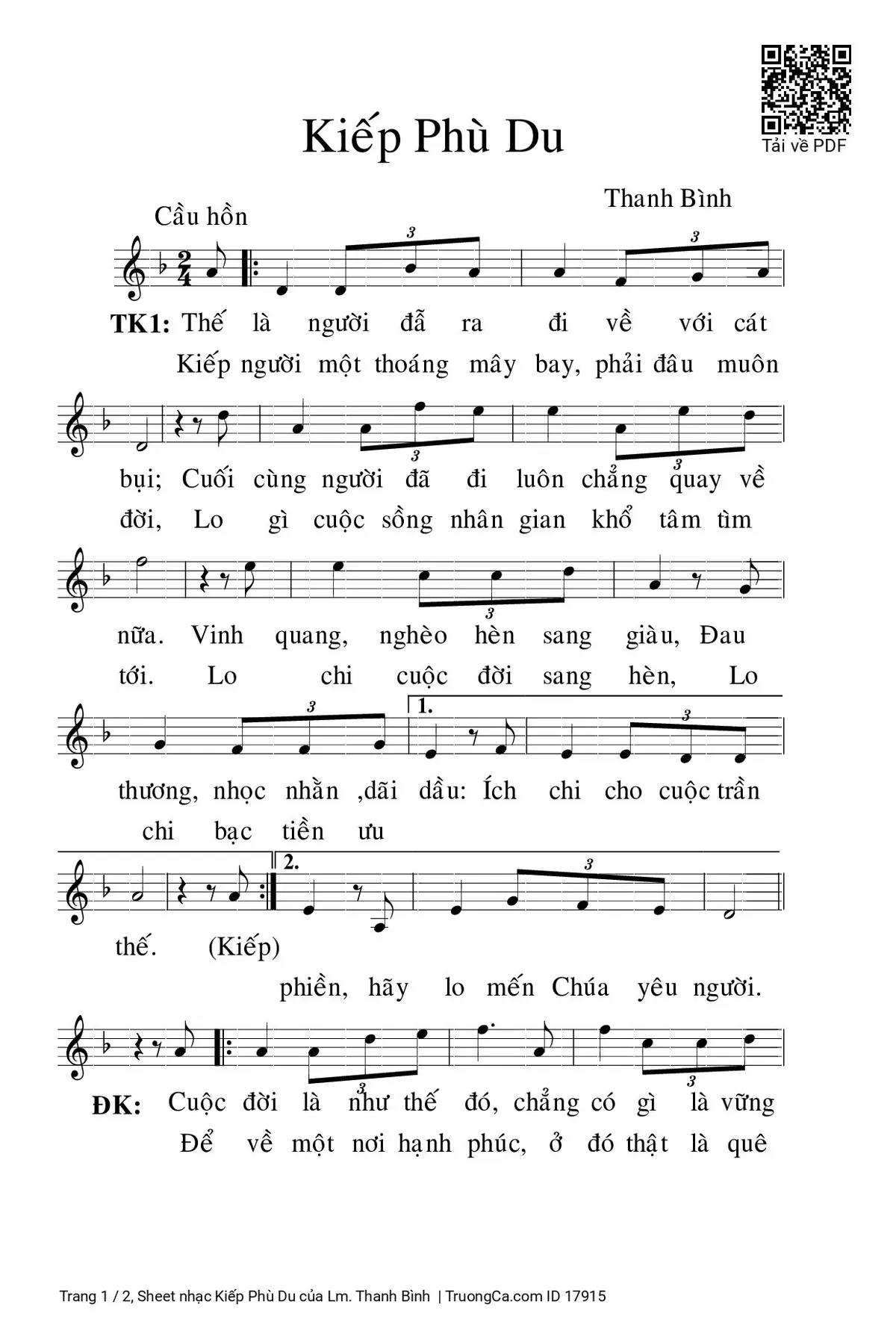 Các sheet PDF tương tự Kiếp Phù Du: