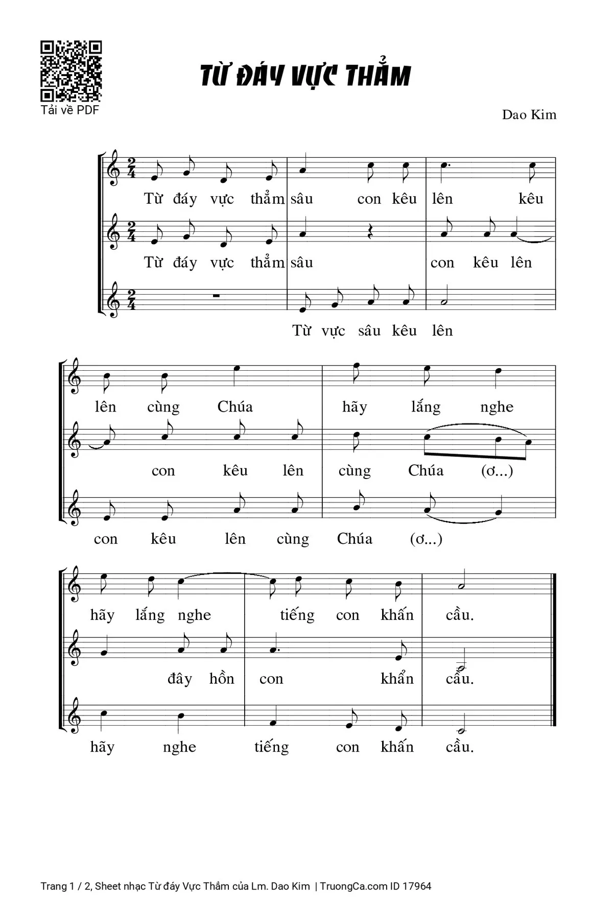 Điệp khúc. Từ đáy vực thẳm sâu con kêu lên kêu lên cùng Chúa hãy lắng nghe hãy lắng nghe tiếng con khấn cầu.