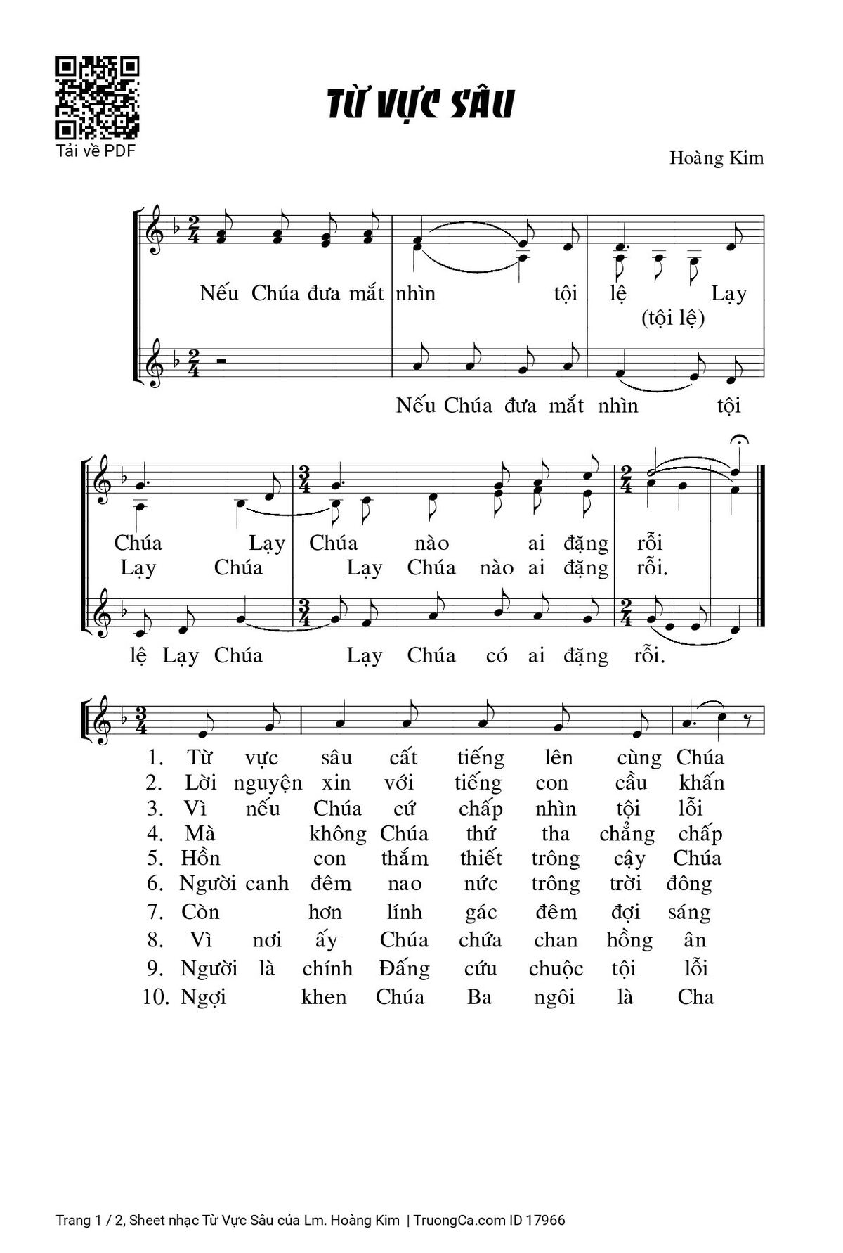 Điệp khúc. Nếu Chúa đưa mắt nhìn tội lệ Lạy Chúa Lạy Chúa nào ai đặng rỗi