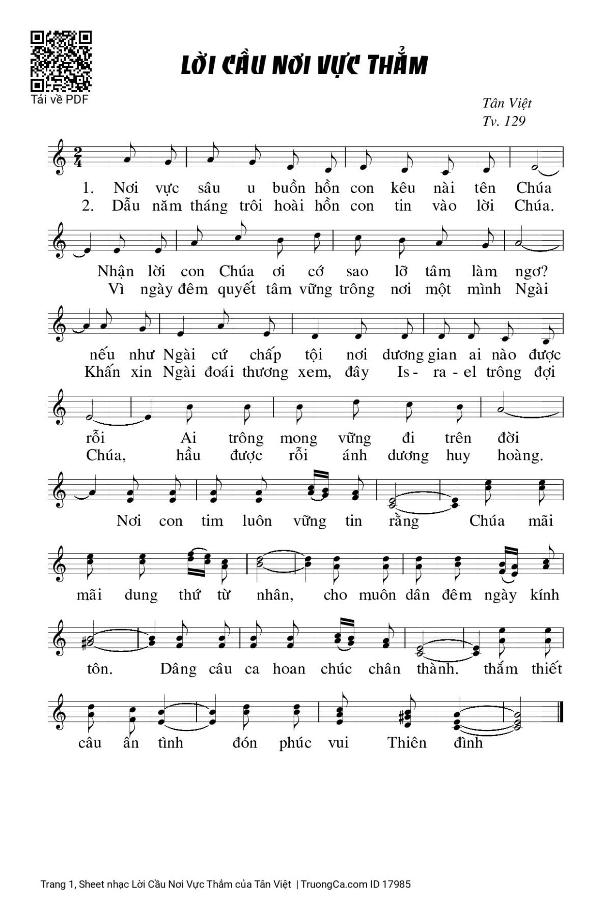 1. Nơi vực sâu u buồn hồn con kêu nài tên Chúa Nhận lời con Chúa ơi cớ sao lỡ tâm làm ngơ? nếu như Ngài cứ chấp tội nơi dương gian ai nào được rỗi Ai trông mong vững đi trên đời