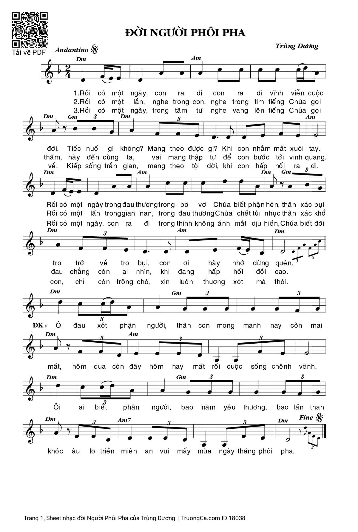 Điệp khúc. Ôi đau xót phận người, thân con mong manh nay còn mai mất, hôm qua còn đây hôm nay mất rồi cuộc sống chênh vênh. Ôi ai biết phận người, bao năm yêu thương, bao lần than khóc âu lo triền miên an vui mấy mùa ngày tháng phôi pha.