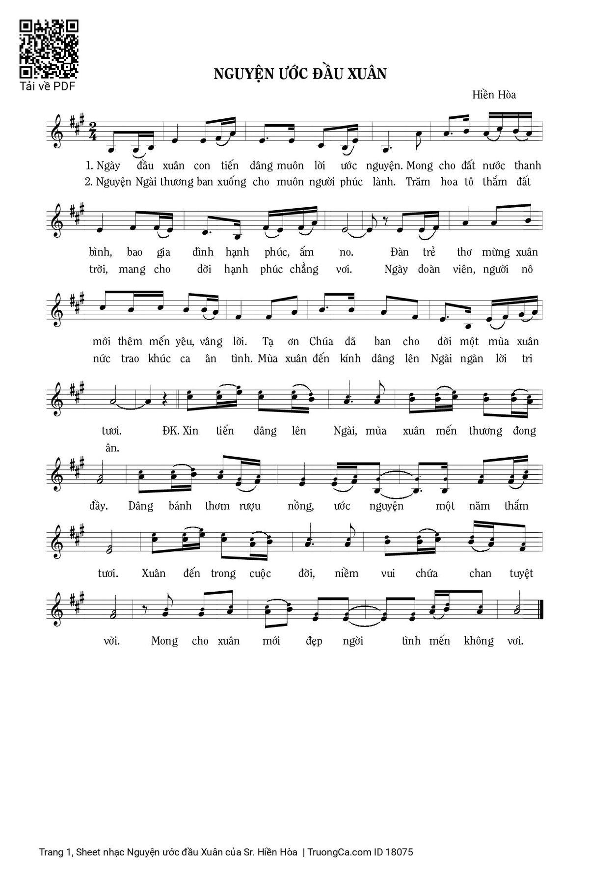 1. Ngày đầu xuân con tiến dâng muôn lời ước nguyện. Mong cho đất nước thanh bình, bao gia đình hạnh phúc, ấm no. Đàn trẻ thơ mừng xuân mới thêm mến yêu, vâng lời. Tạ ơn Chúa đã ban cho đời một mùa xuân tươi.