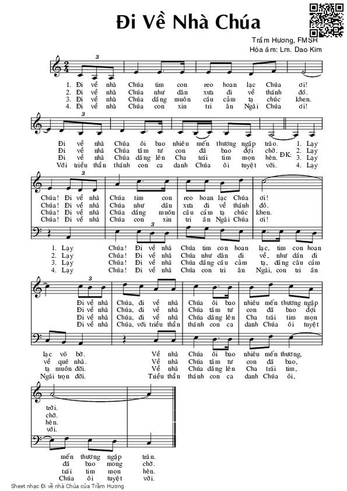 Trầm Hương Đi về nhà Chúa tim con reo hoan lạc Chúa ơi [PDF] [Sheet] [Lời H.A] [Mp4/Midi]