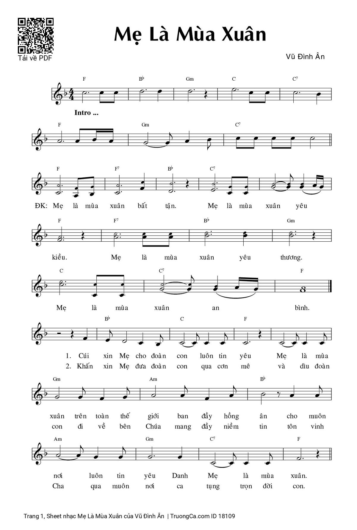 Các sheet PDF cùng tên Mẹ Là Mùa Xuân: