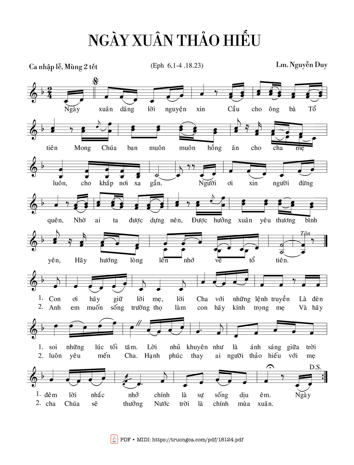 Lm. Nguyễn Duy Ngày xuân dâng lời nguyện xin cầu cho ông bà tổ tiên [PDF] [Sheet] [Lời H.A] [Mp4/Midi]