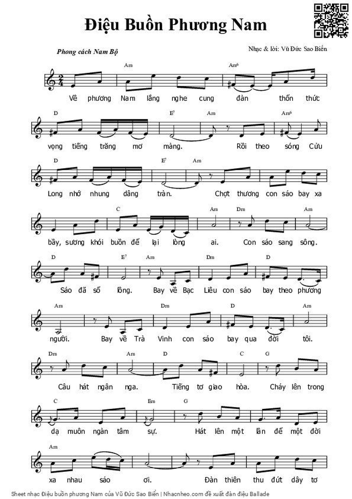 Vũ Đức Sao Biển Về phương Nam lắng nghe cung đàn Thổn thức vọng dưới trăng mơ màng [PDF] [Sheet] [Lời H.A] [Mp4/Midi]